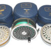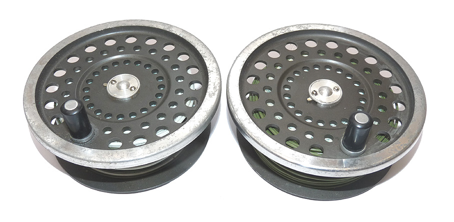 Notes: A pair of matching spare spools for the classic Marquis Salmon No2 reel. One fitted with Hardy Wet Fli WF-10i line and backing, the second Hardy Sink Tip DT-10 with backing. Both are ready to use.