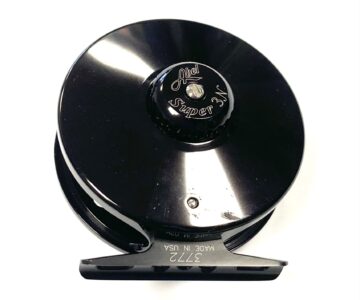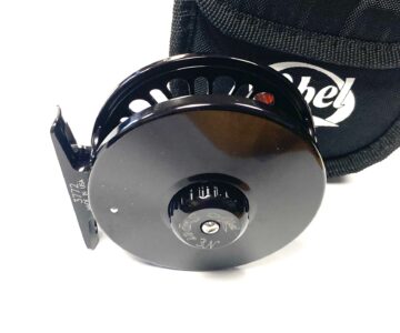 Just in this superb conditioned Abel Super 3N 3″ narrow drum fly reel with black anodised finish, polished wood handle and silver counter balance. A beautifully presented reel with tear drop perforations and an extremely string drag system with interchangeable spool. Complete with original black Abel reel pouch.