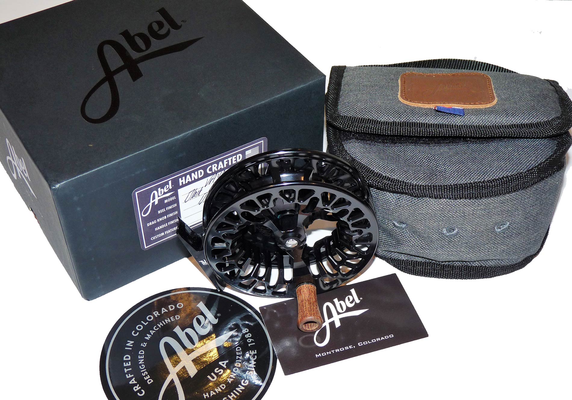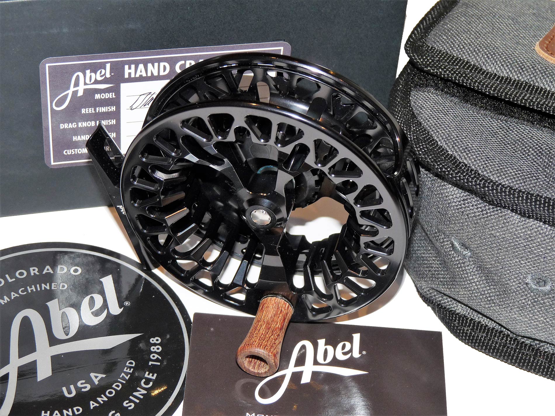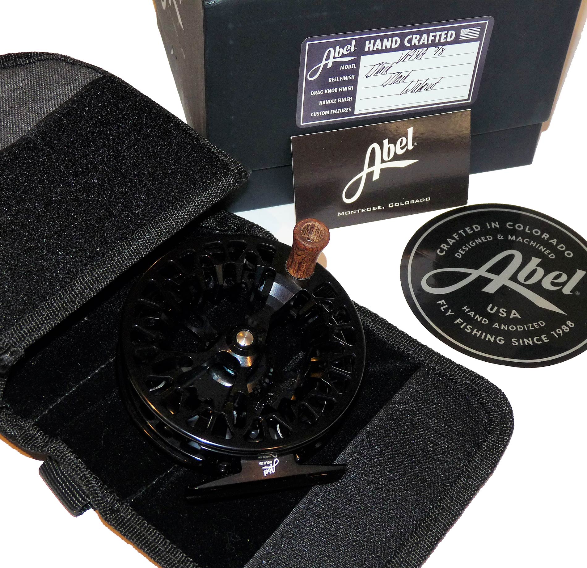 Abel VAYA hand crafted black 7/8 reel with pouch / box unused