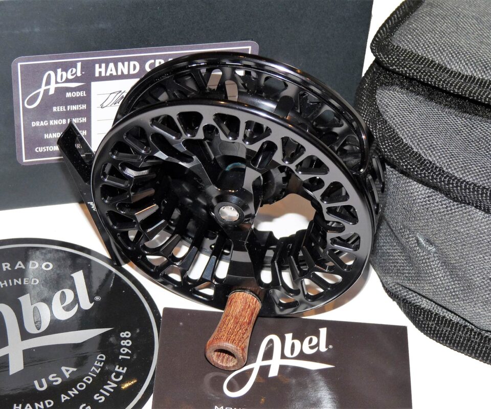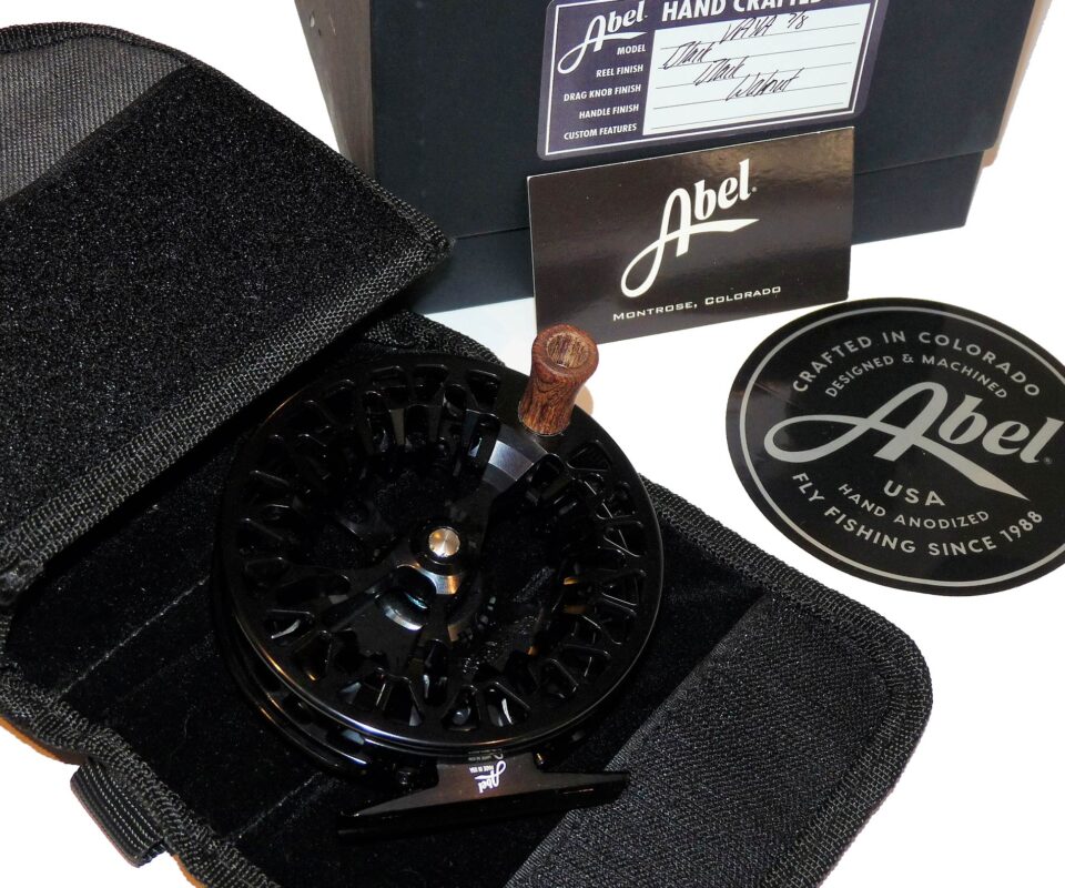 TT opinion: A mint and unused Abel Vaya 7/8 reel. Crafted by avid Colorado anglers, the VAYA series debuts an all-new technical look and feel paired with outstanding performance. The partially-ported VAYA frame offers the unique combination of minimized weight, incredible rigidity, and just enough surface area to highlight Abel’s hand-anodized finishes. The frame interior also features varying sets of CNC-milled fly patterns, relevant to each size of reel. The large-arbor spool features a precision-balanced, dual-pawl drag engagement design that eliminates the need for a counterweight. Complete with papers, pouch and original box.