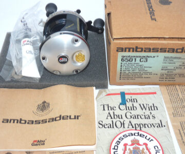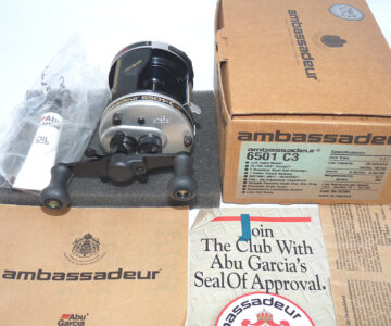 Abu Ambassadeur 6501C3 LHW reel with papers box and oiler