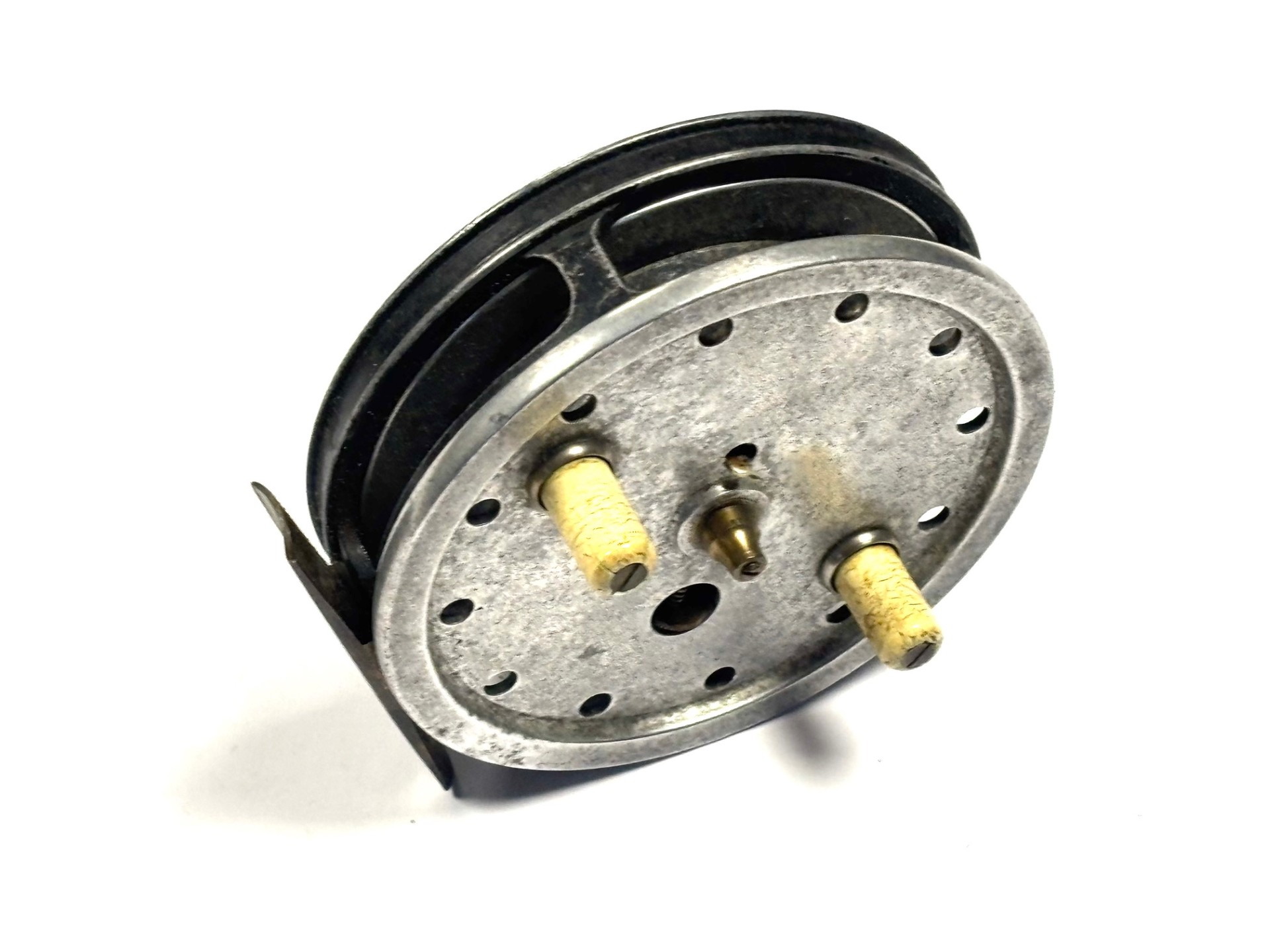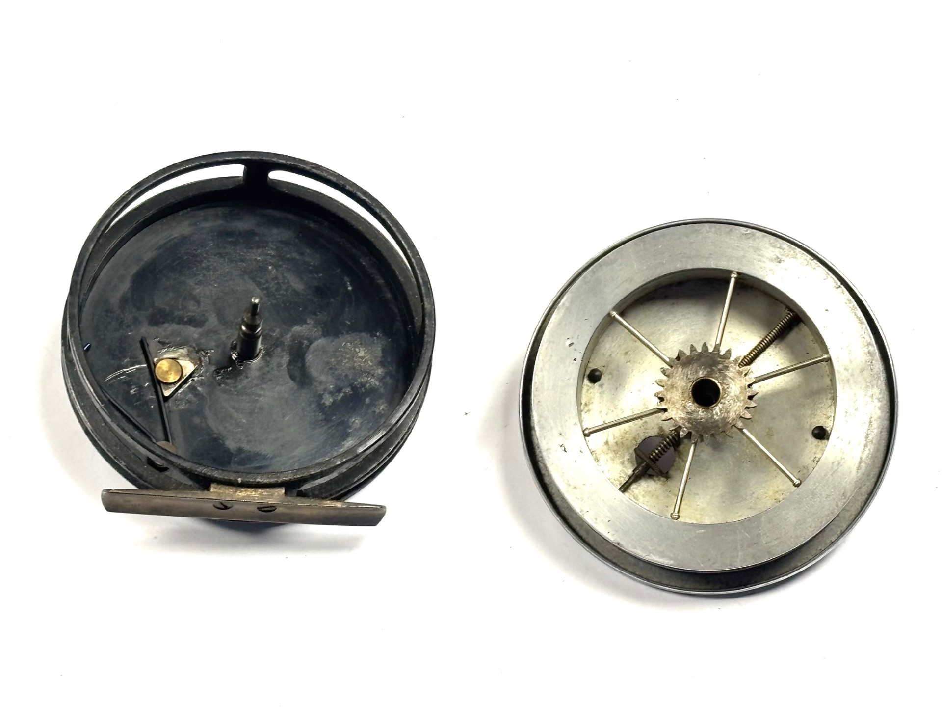 An Allcock’s of Redditch Perfection Flick em, 4 1/8” alloy trotting reel, face plate tension regulator, 6 spoke to the underside of drum with back plate optional check, the reel spins straight and well, ready to use.
