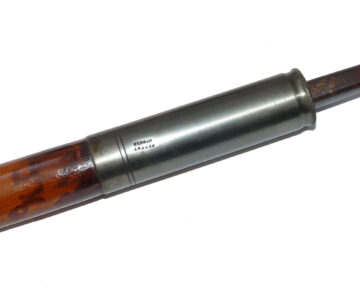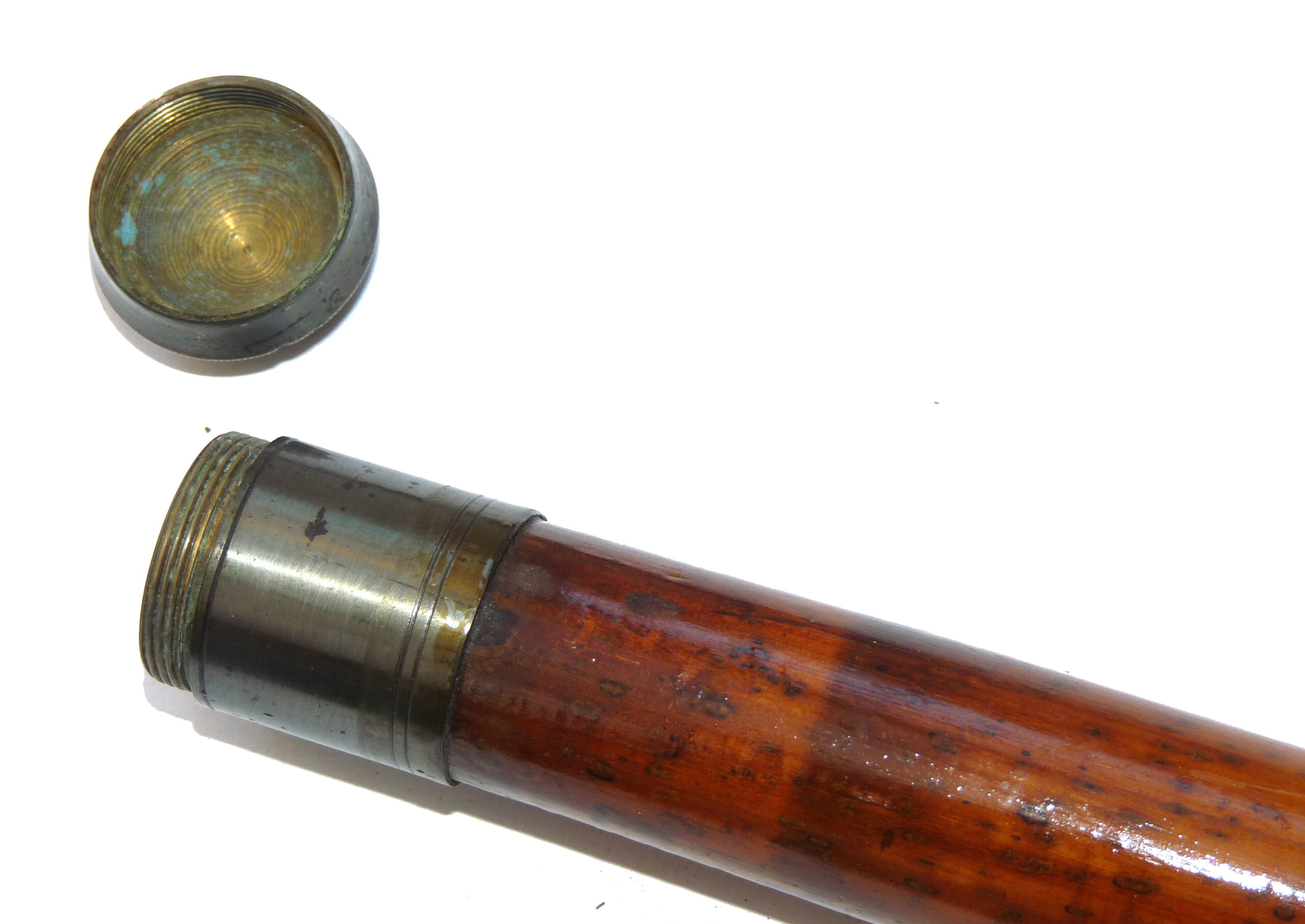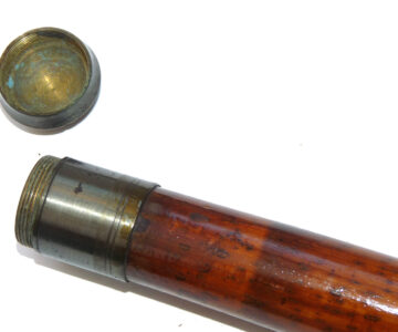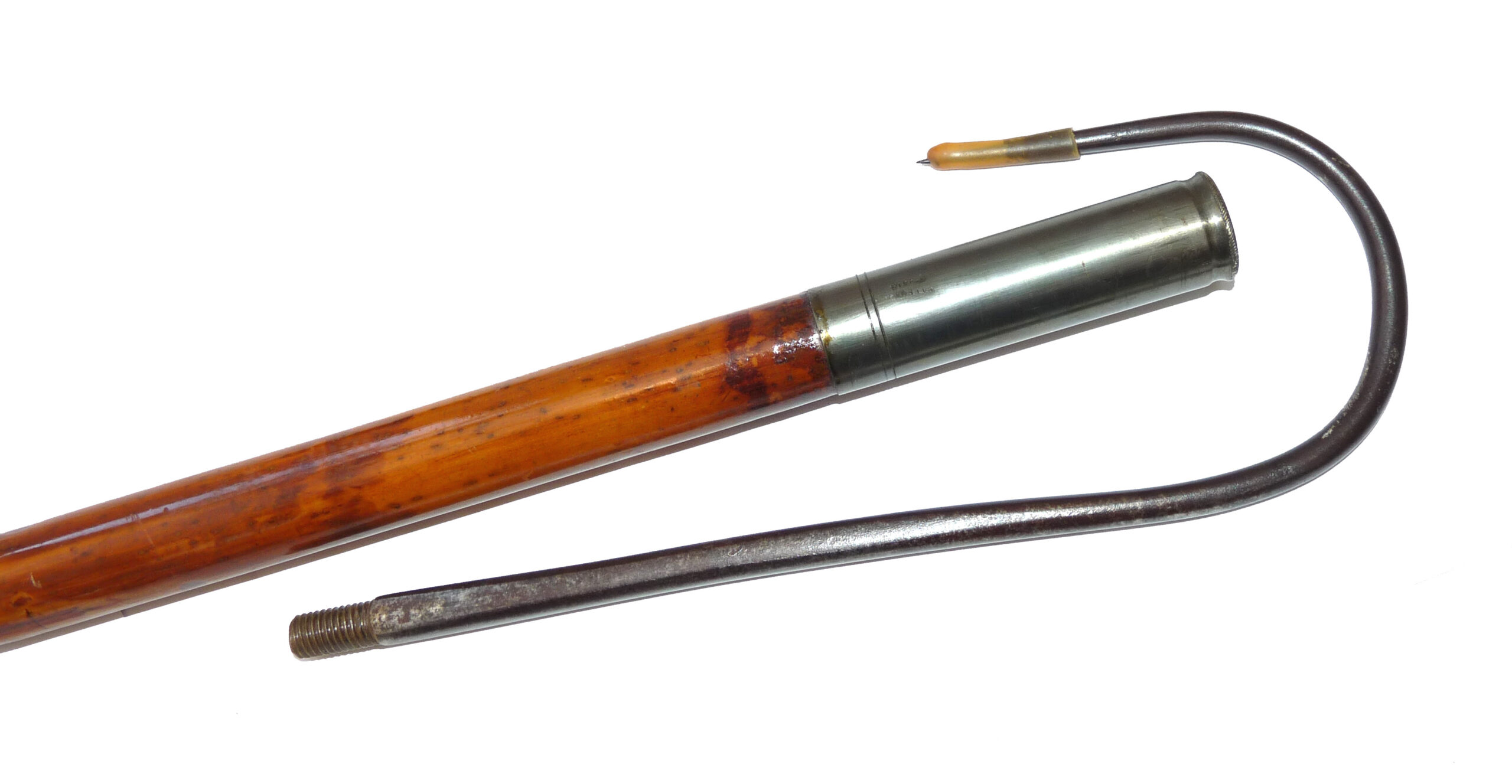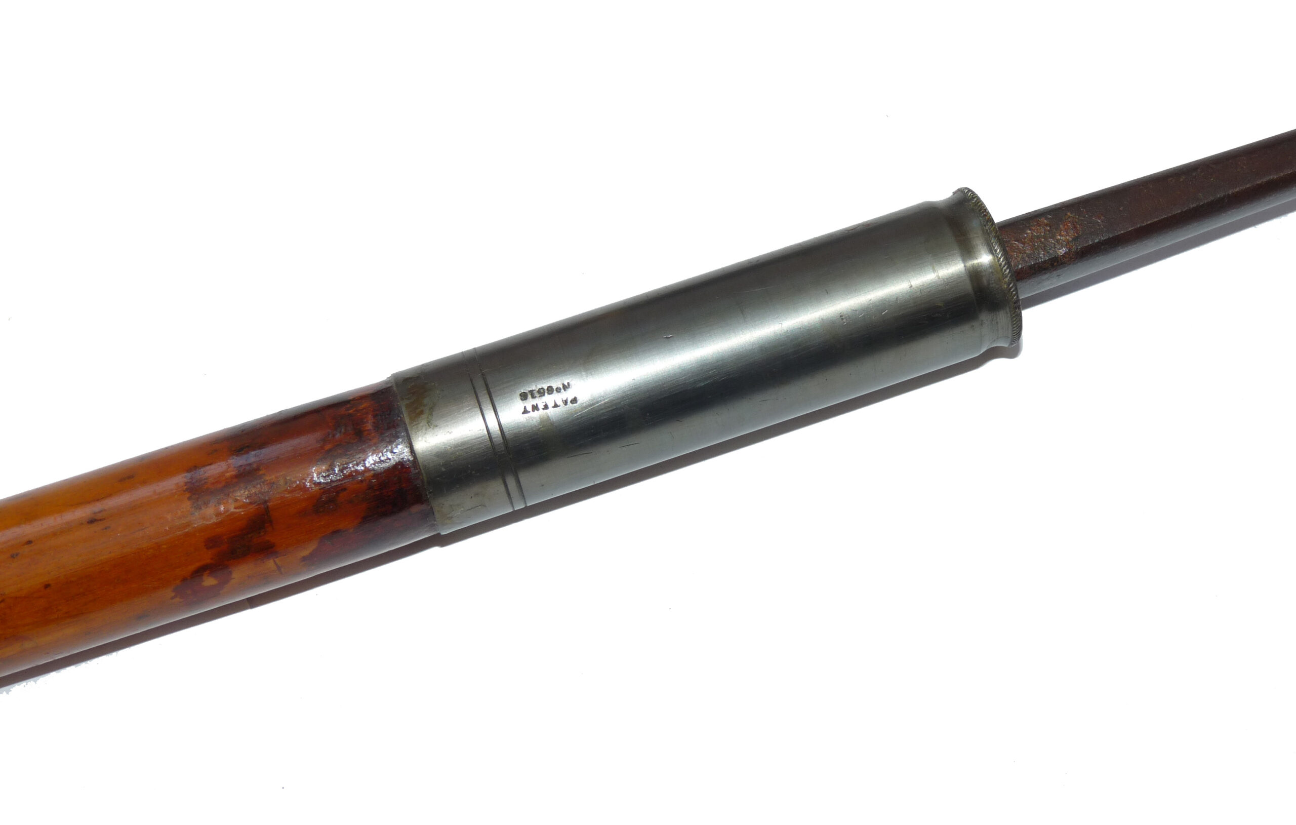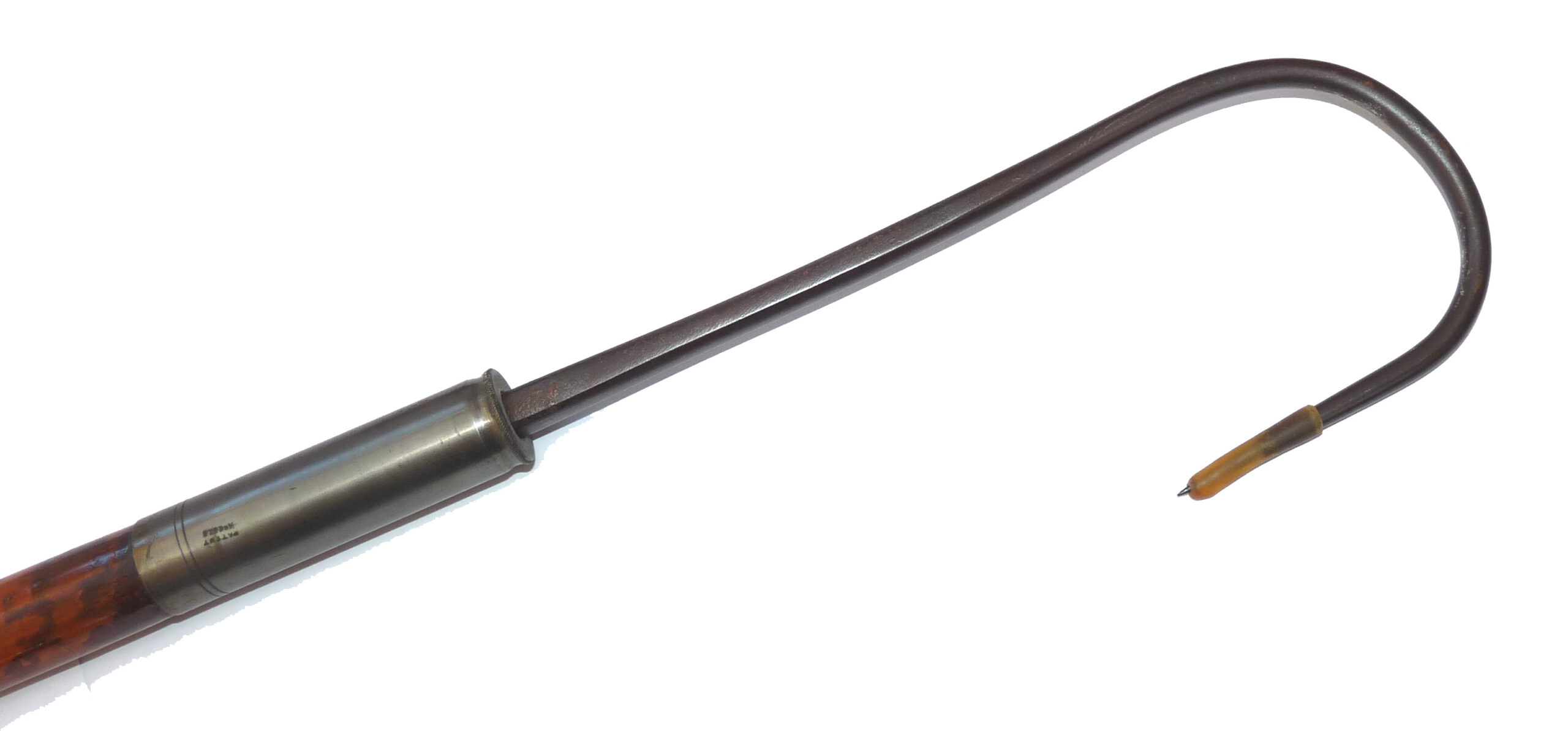 Antique decorative hollow bamboo shaft gaff, the brass screw socket stamped “Patent No.6516”,