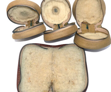 TT opinion: A good selection of high quality fly fishing accessories. Barbour canvas and leather fly wallet, 7″ x4″ with brass zip, leather trim and sheep’s wool lining. PLUS 3 Made in Scotland canvas fly reel cases, 2 x 3-3/4″ and 1 x 4″ diameter, brass zip and sheeps wool lining. Good quality tackle accessories to use