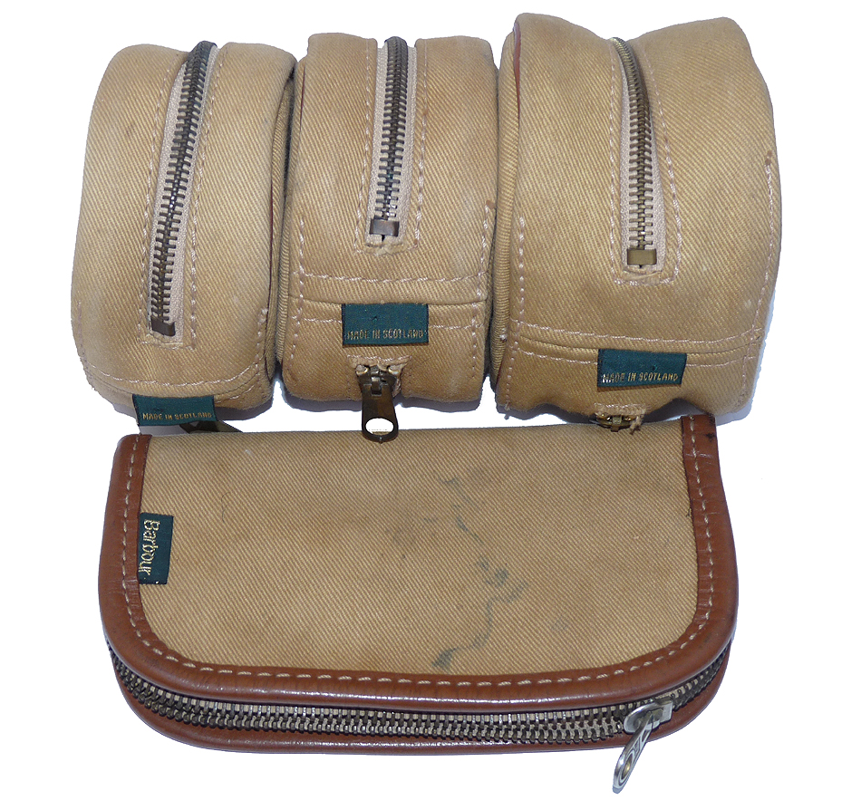 Barbour canvas sheepskin fly wallet + 3 Scottish canvas fly reel cases