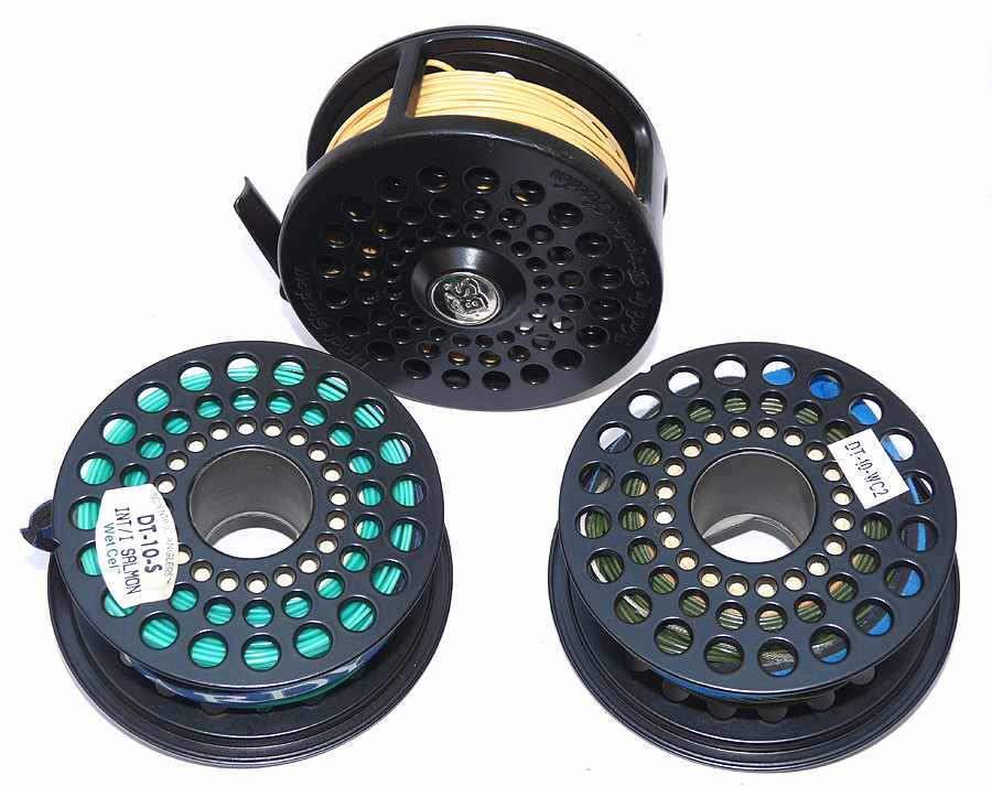 Bringsens Sweden Black Shadow salmon fly reel + 2 s/spools and lines