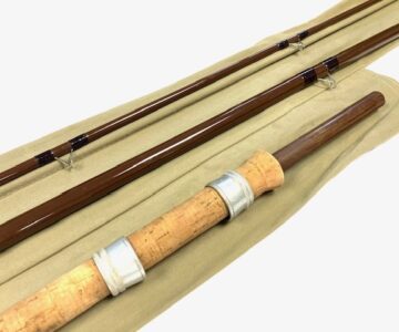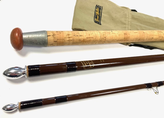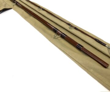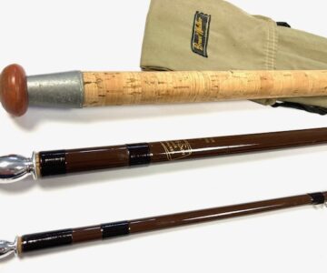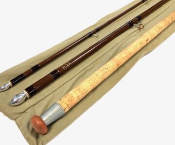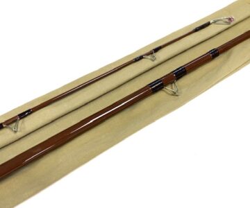 TT opinion: Just in as part of a lovely rod collection we have a fine Bruce & Walker / Bob James 11′ 6″ Trotter fibre glass hollow rod in super condition with separate clean cork handle with sliding reel fittings, brown blank with alloy stoppers and complete with very clean original B & W cloth rod bag. Definitely one to fish with or collect.