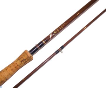 TT opinion: Another classic trout fly rod by Bruce & Walker. Clean cork handle with screw up alloy reel fittings, dark brown whippings and alloy guides. Nice straight rod with good tip action. In tatty original blue cloth rod bag. Ready to fish!