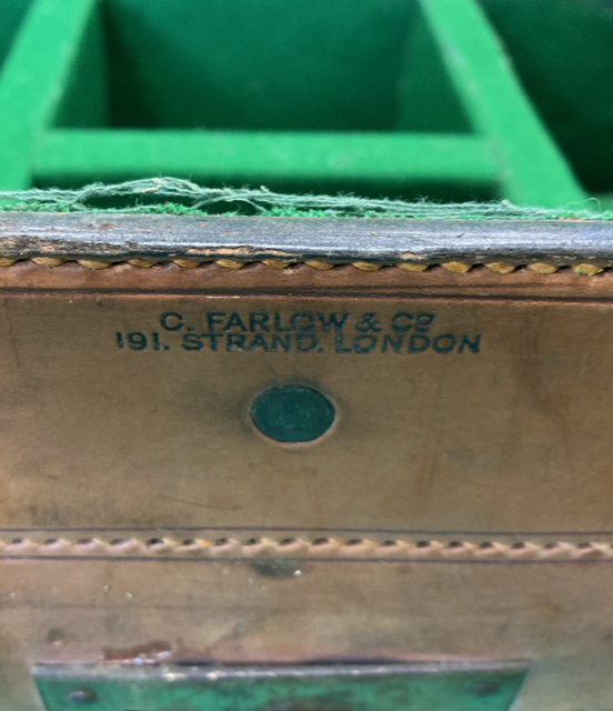 C Farlow & Co rectangular leather salmon tackle hold-all fishing case EX RARE