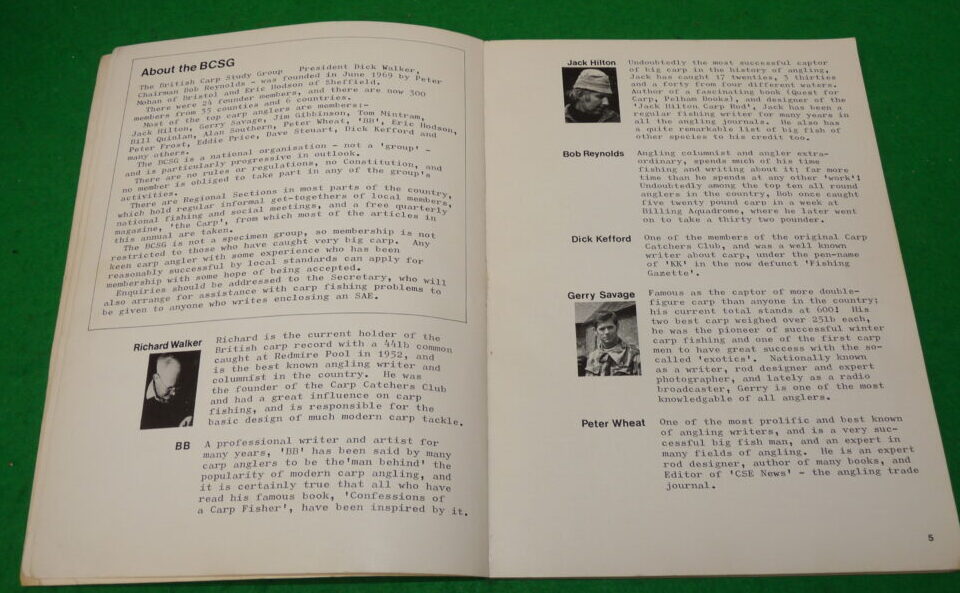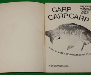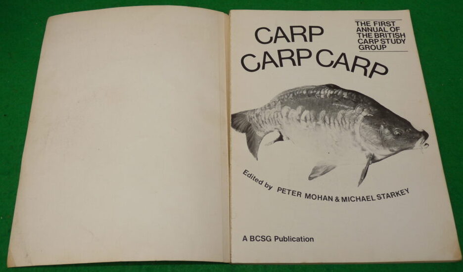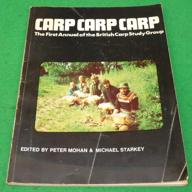 We have a 1973 1st edition of CARP CARP CARP, the first annual of the British Carp Study Group, edited by Peter Mohan & Michael Starkey. It is a softback copy with a glossy cover, having 96 pages with black & white diagrams and photographs. It includes articles from Richard Walker, Jack Hilton to name a few. The odd crease across the front & rear cover but an interesting read.