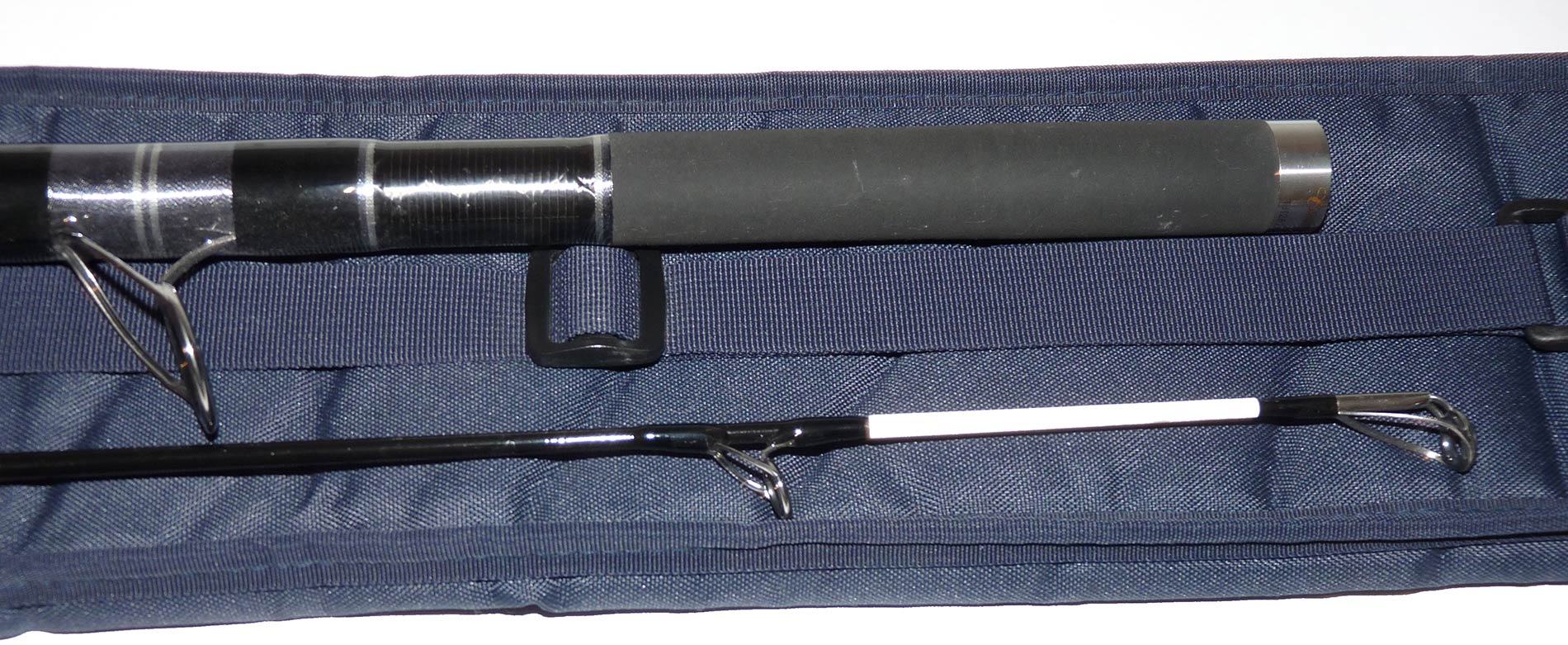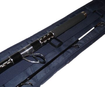 TT opinion: Another great example of the Century Eliminator T700 SGT Titanium K Guides 2 piece rod 15 we have just has in. This reinforced extra strength beach casting rod is one if the most powerful rods on the market. This is a new design of rod from Century taking in aspects of traditional UK style beach rods and mixing them up with attributes of continental styles rods producing a rod which is new, different and quite simply stunning. The growth of continental rods in the UK has mainly down to the distance the ‘average bloke’ can achieve with a simple overhead thump but as with everything, there is a downside. Continental rods generally don’t sit well in swells and are unsuitable to use over mixed and rougher ground. Century’s design team decided to see if they could produce something which contains the best of both styles of rod, so the Eliminator T700 was born. Complete with original padded rod bag.