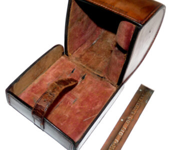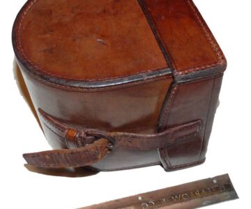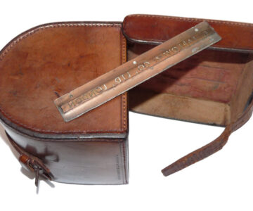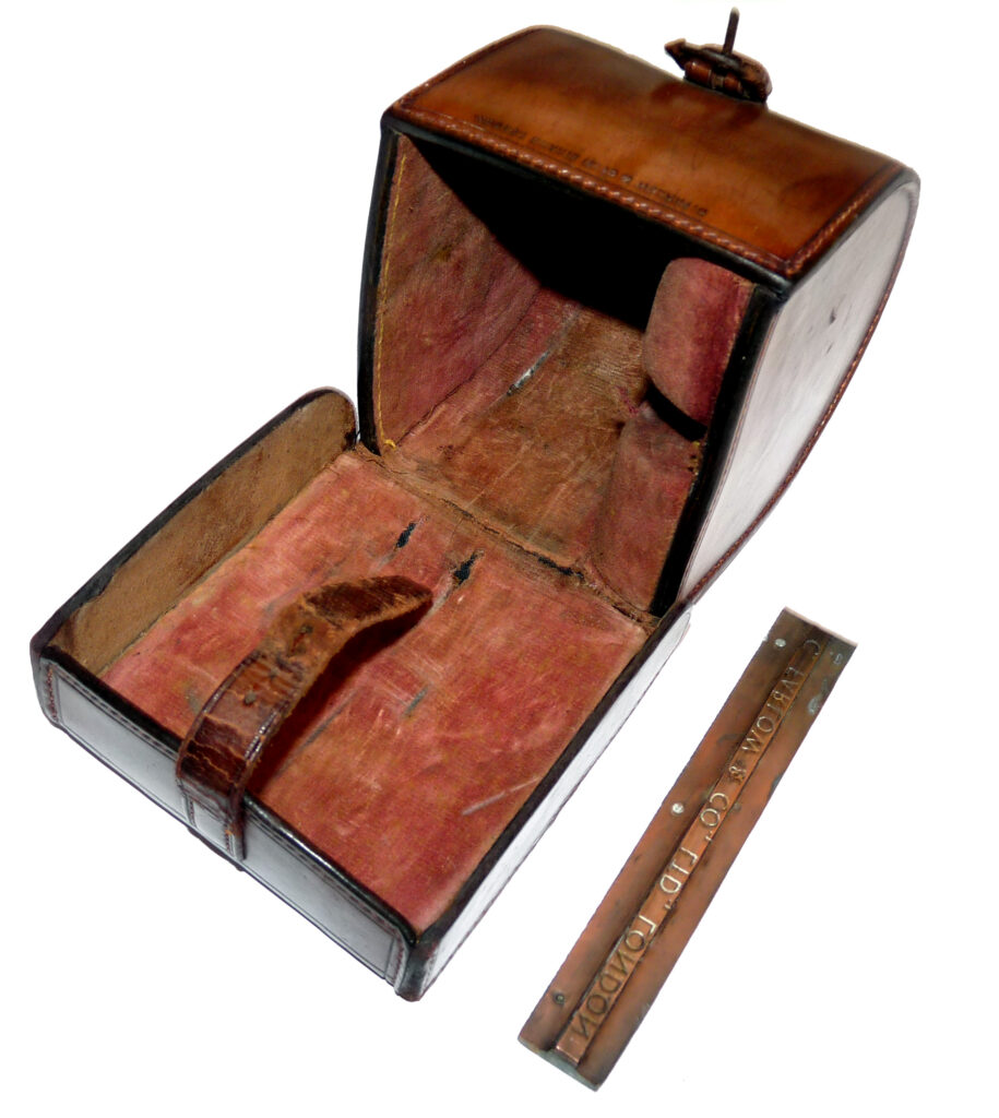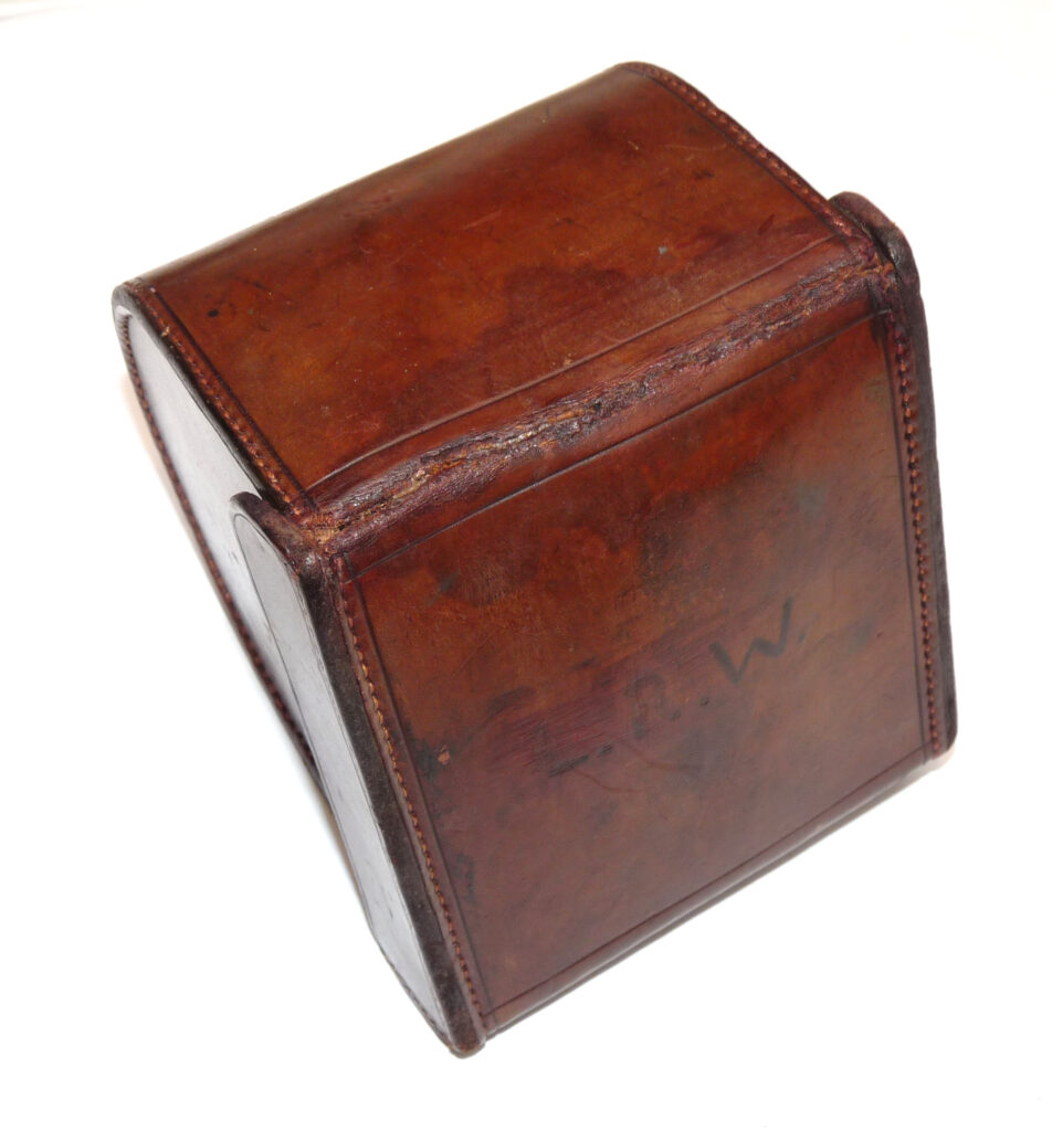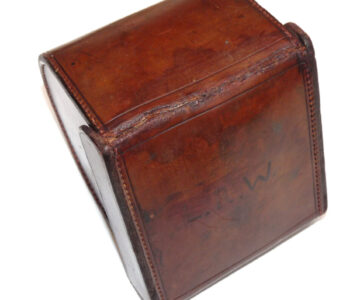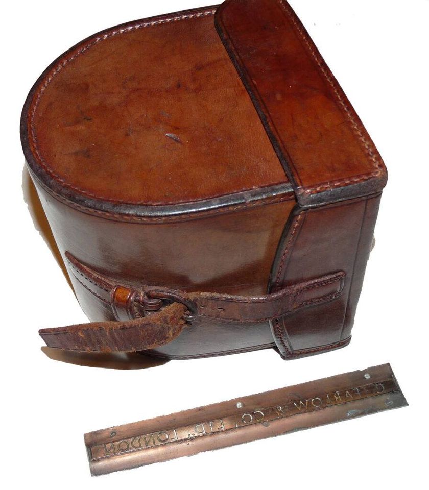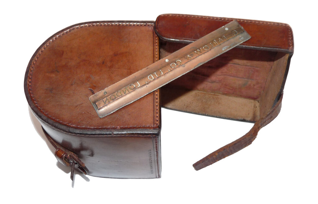 C. Farlow & Co., 191 Strand, London block leather reel case with original strap & buckle. The case with fit a 4” wide drum fly reel, such as a salmon perfect. Internally the case measures 62mm wide and with a 20mm deep handle slot. Owner’s initials “LRW” to the lid, rich patina to the case, great to display & protect your reel & comes with an early Farlow brass copper printing block, 130mm x 20mm, good display piece.