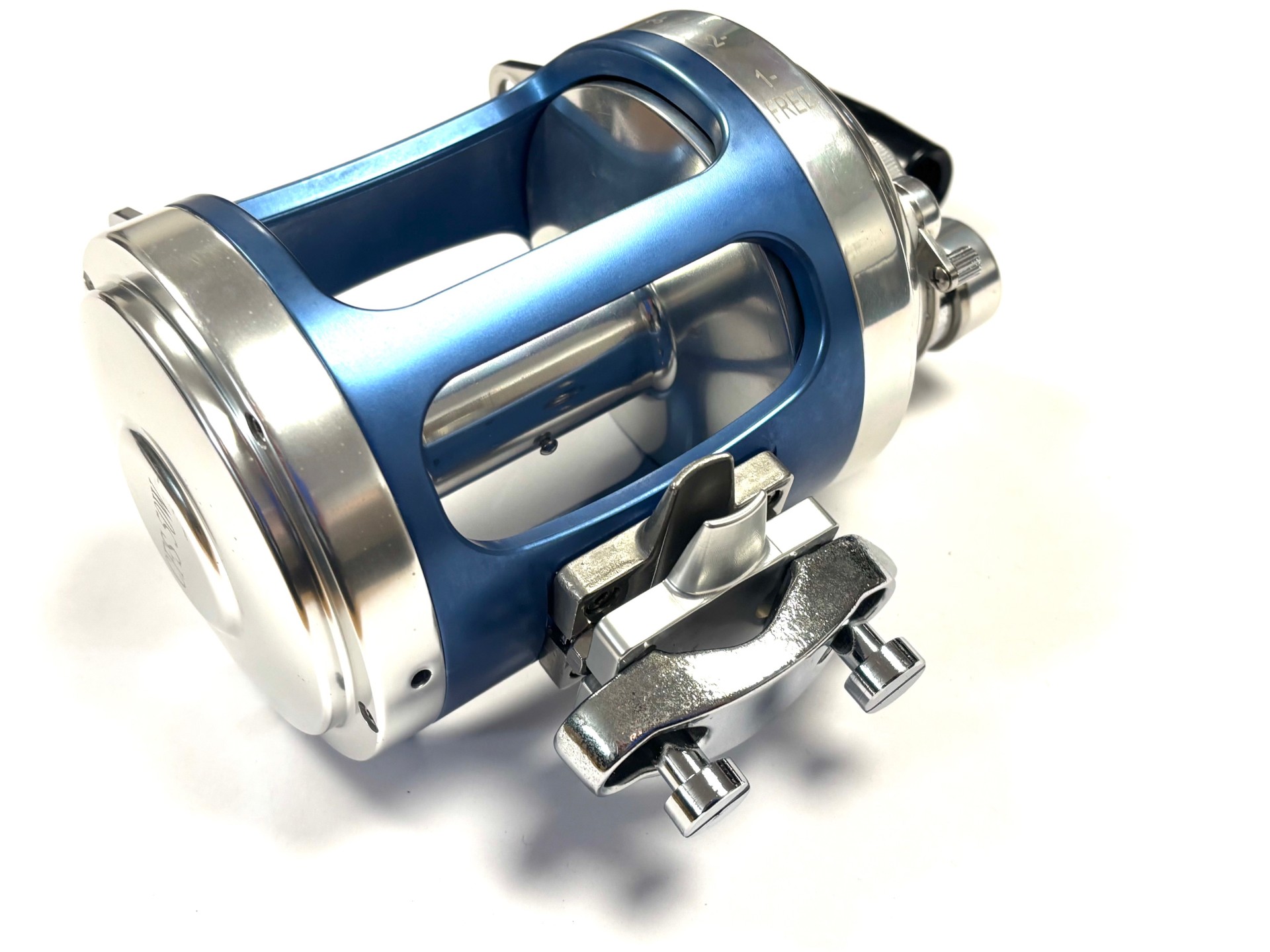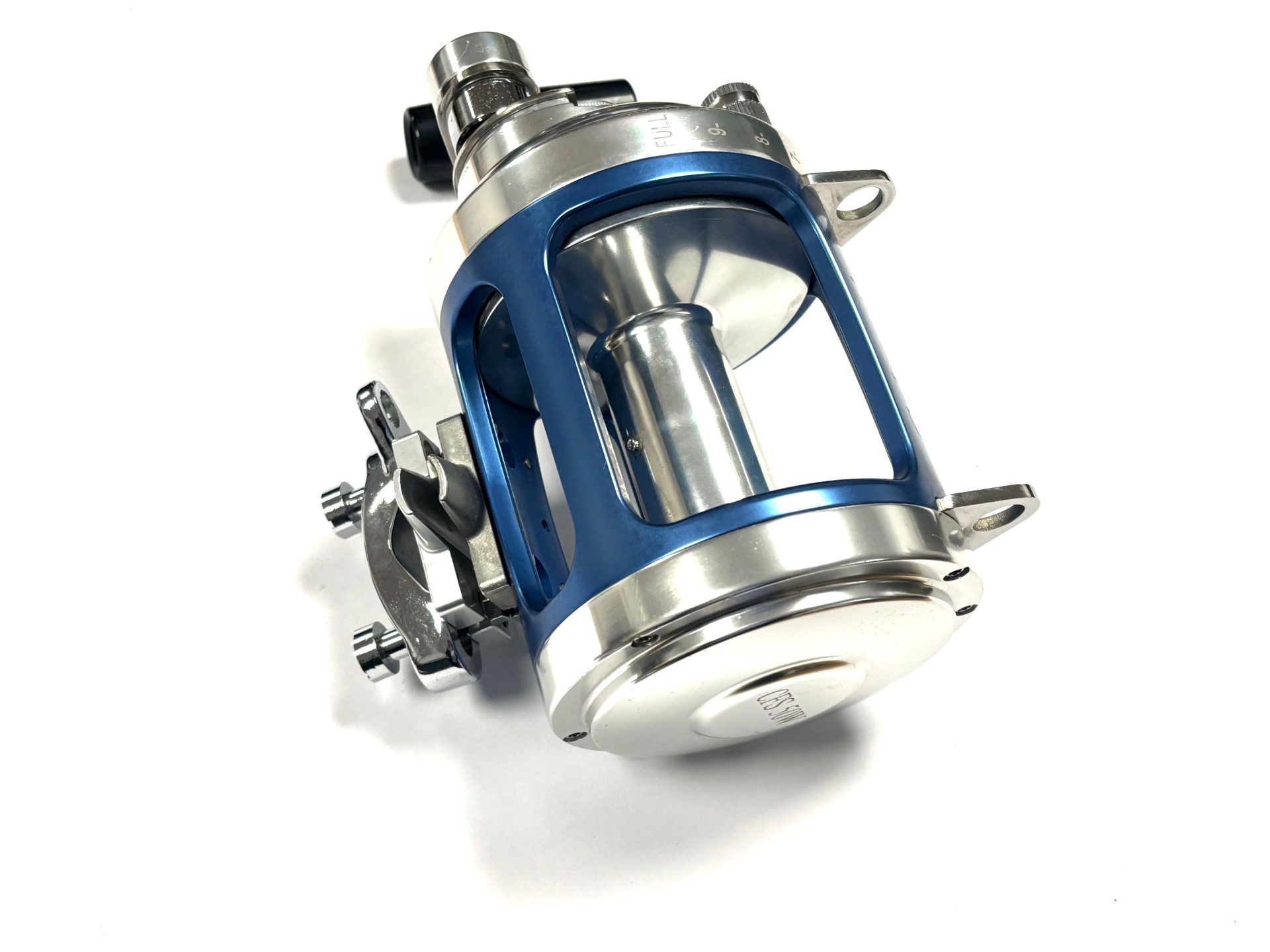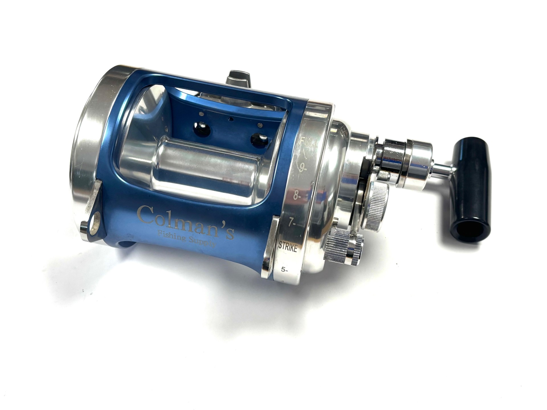 Large Colmans CFS 50W Big game reel with full strike brake clutch, reinforced heavy duty handle and screw rod fit attachment.
