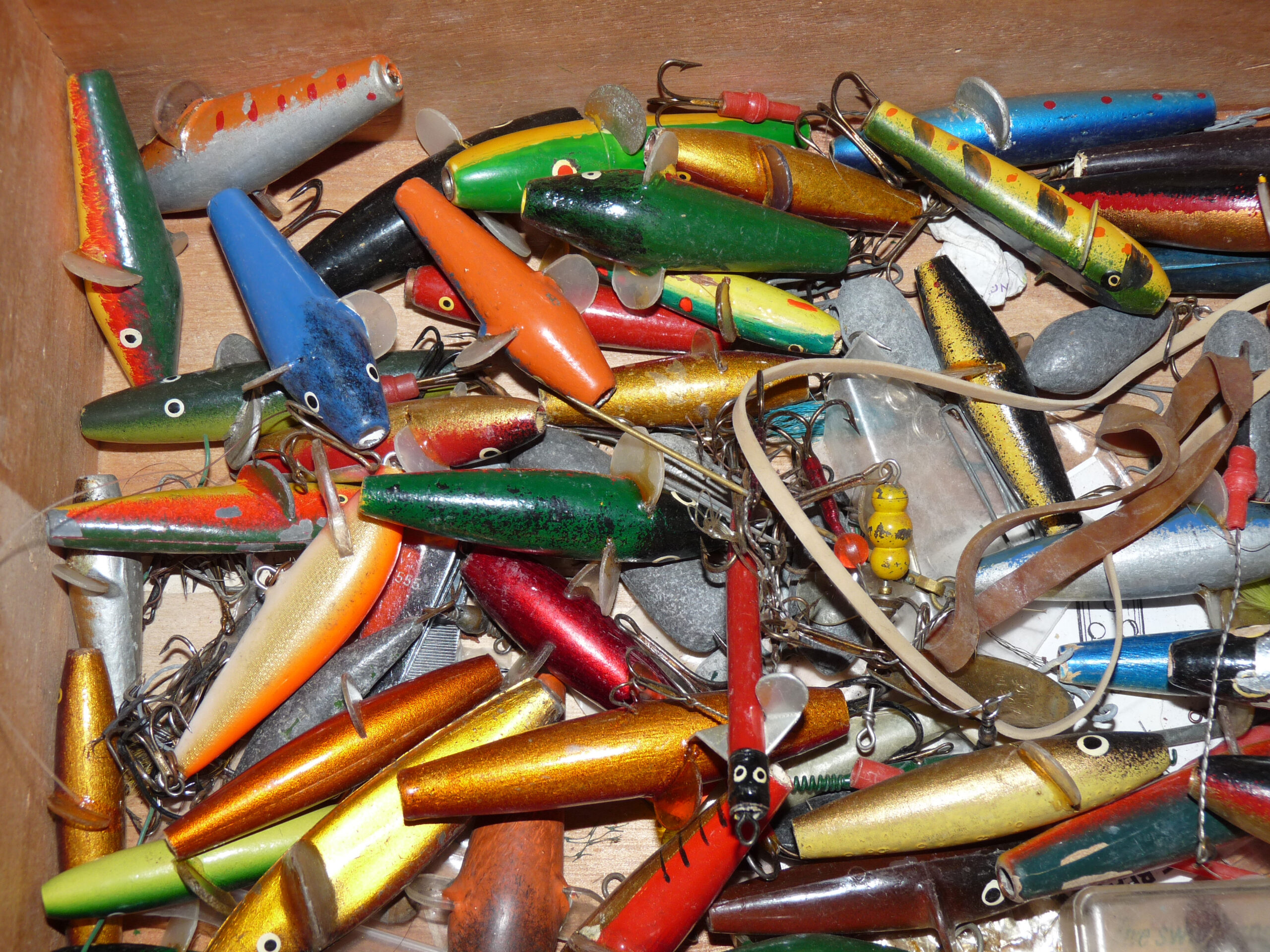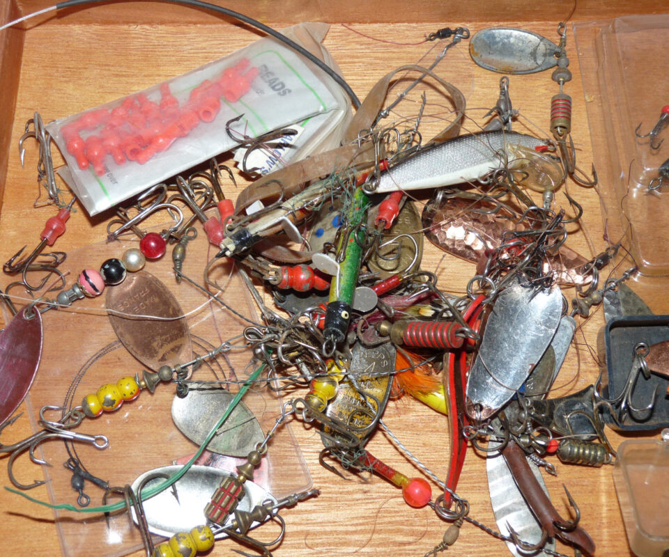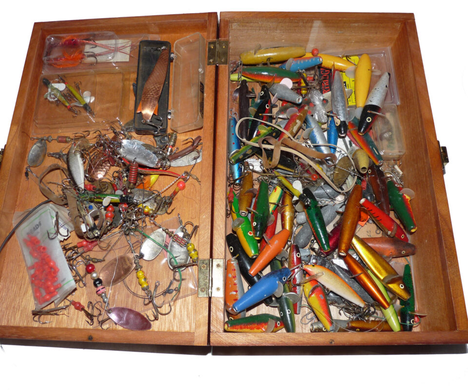 TT opinion: A good large mixed collection of spinners, Devon Minnows lures, and spoons in a variety of colours and materials. ideal mixed selection for salmon perch, chub pike or even bass. Lots to untangle and fish, all in a nice wooden case with a hinged lid.