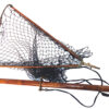 The 6′ detachable handle is made from seasoned, tempered and bored-out Tonkin bamboo. It is straightened, beautifully mottled, and impeccably varnished. There are brass fittings at each end, with a rubber button fitted to the butt. The handle is inscribed The № 42 Venables net. E. Barder Rod Co. ’93. The handle comes in a fitted bag with a hanging loop.