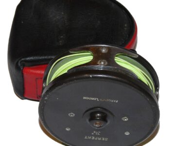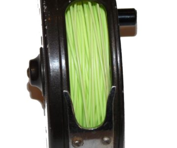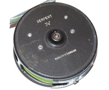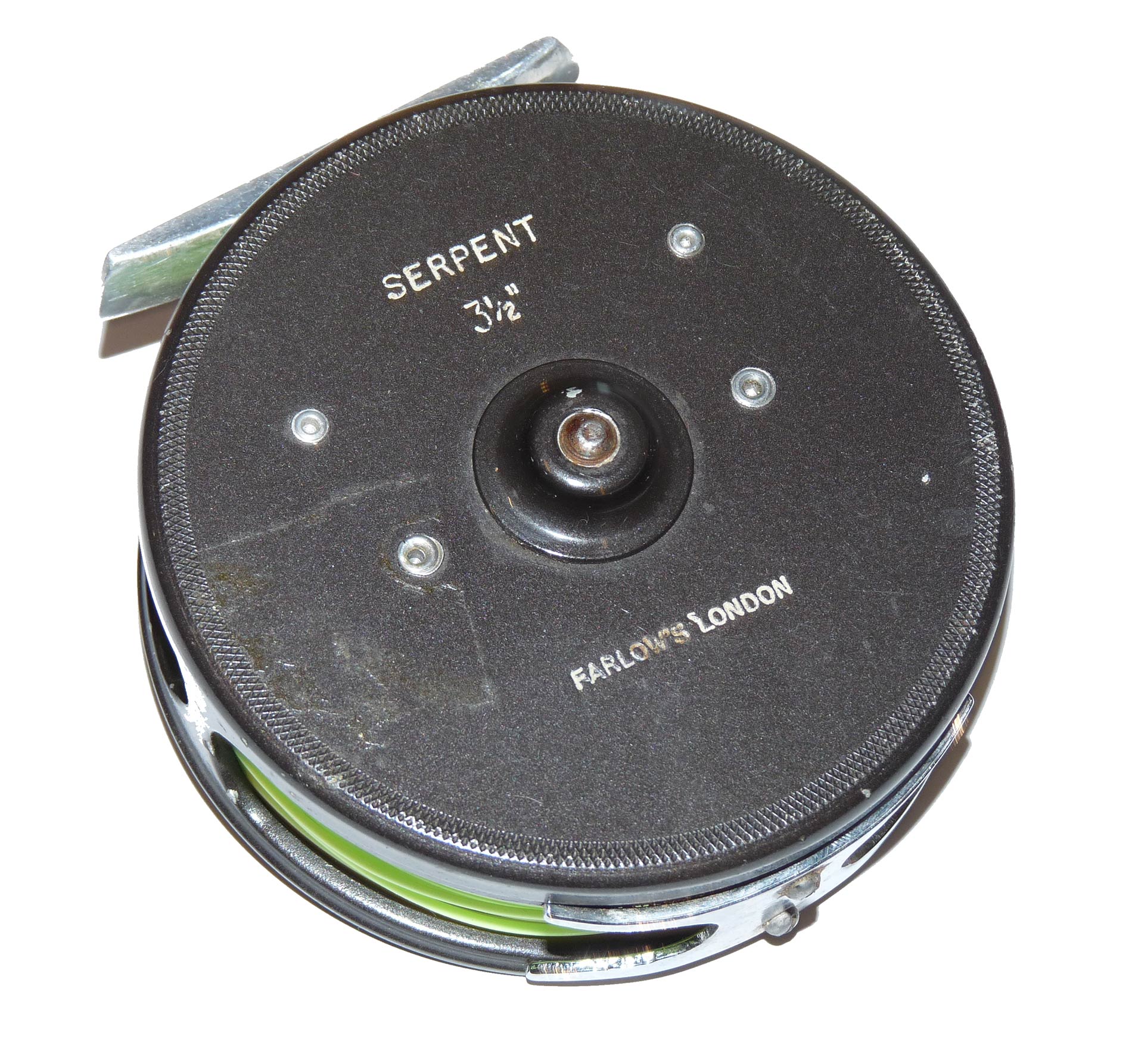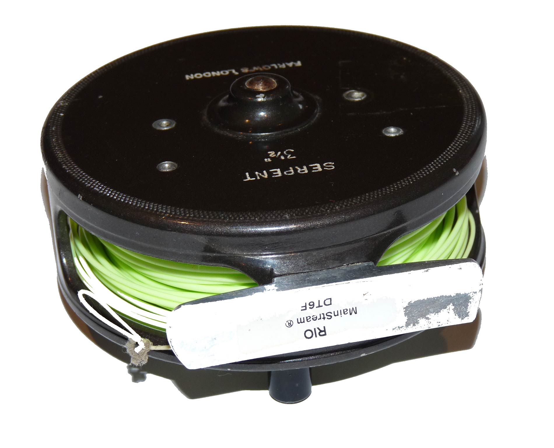 TT opinion: A good useable Farlow’s Serpent trout fly reel with U shaped line guard, drum release latch and smooth alloy foot complete with green floating line and reel bag.