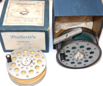 Farlow’s of London “The Serpent” 4” W alloy salmon fly reel with s/spool and box