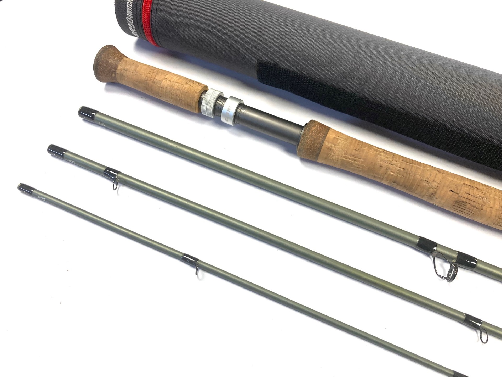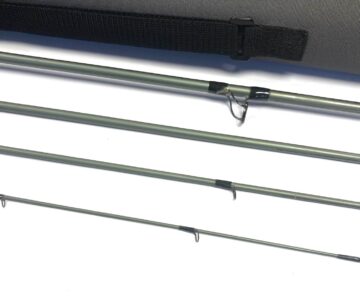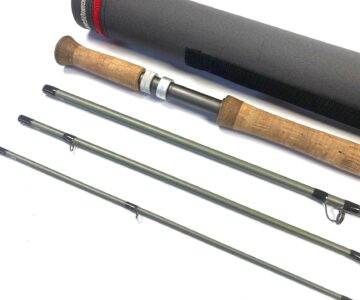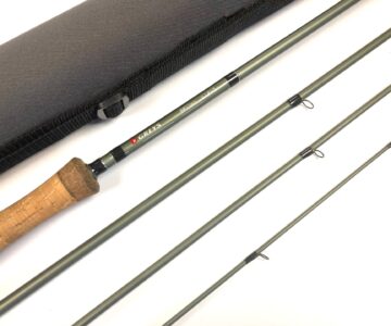 Just in as part of a large fly fishing collection, a fine a rarely seen GR50 ‘SWITCH’ rod with push over ferrules, 7” cork handle and twin screw reel fitting. A lovely straight rod. Slim lightweight tip action rod, suited to lakes, ponds & rivers, comes with maker’s original bag & Cordura tube.
