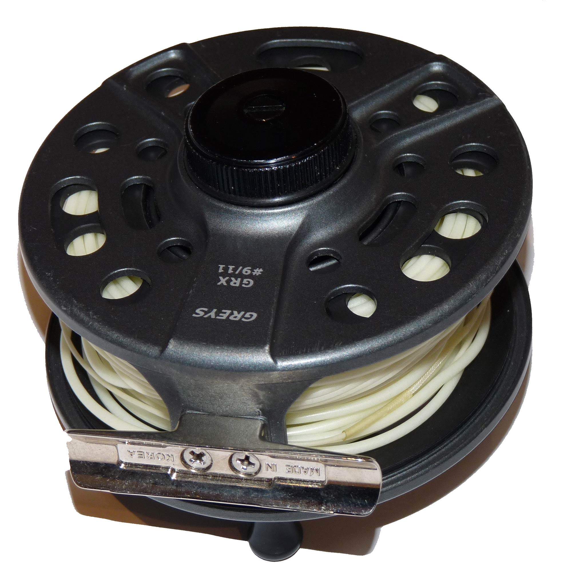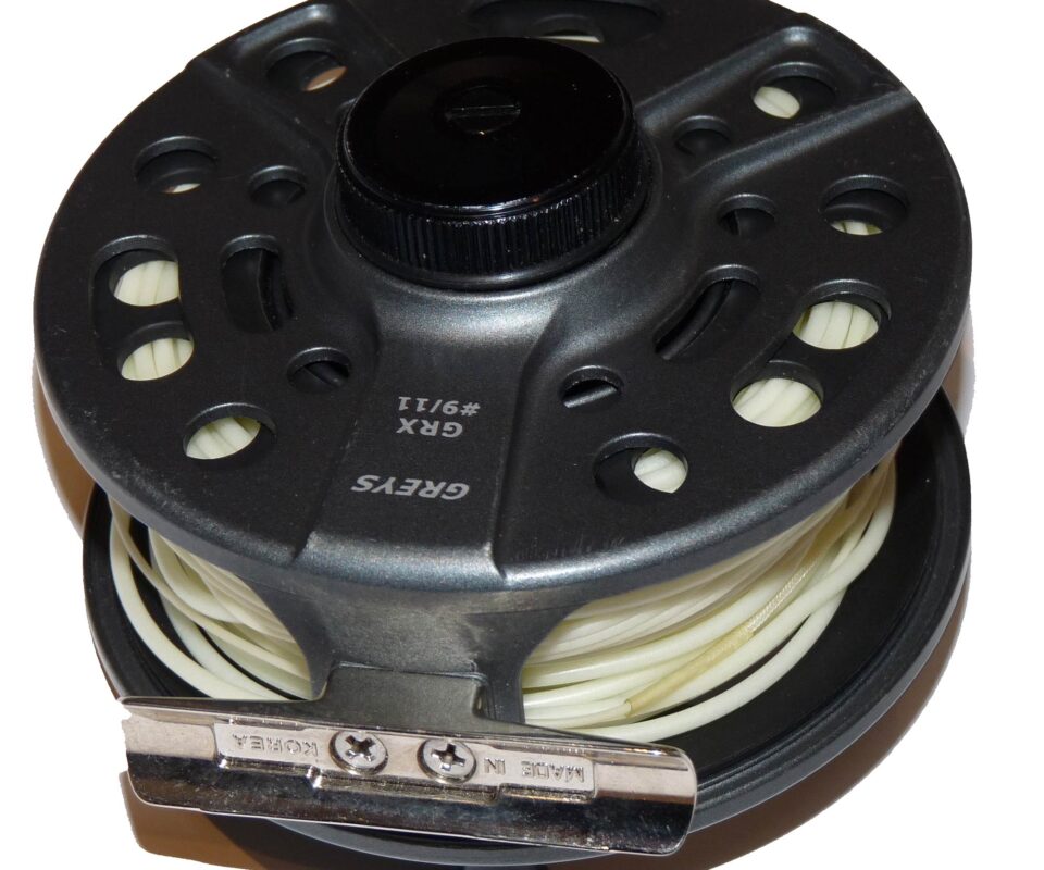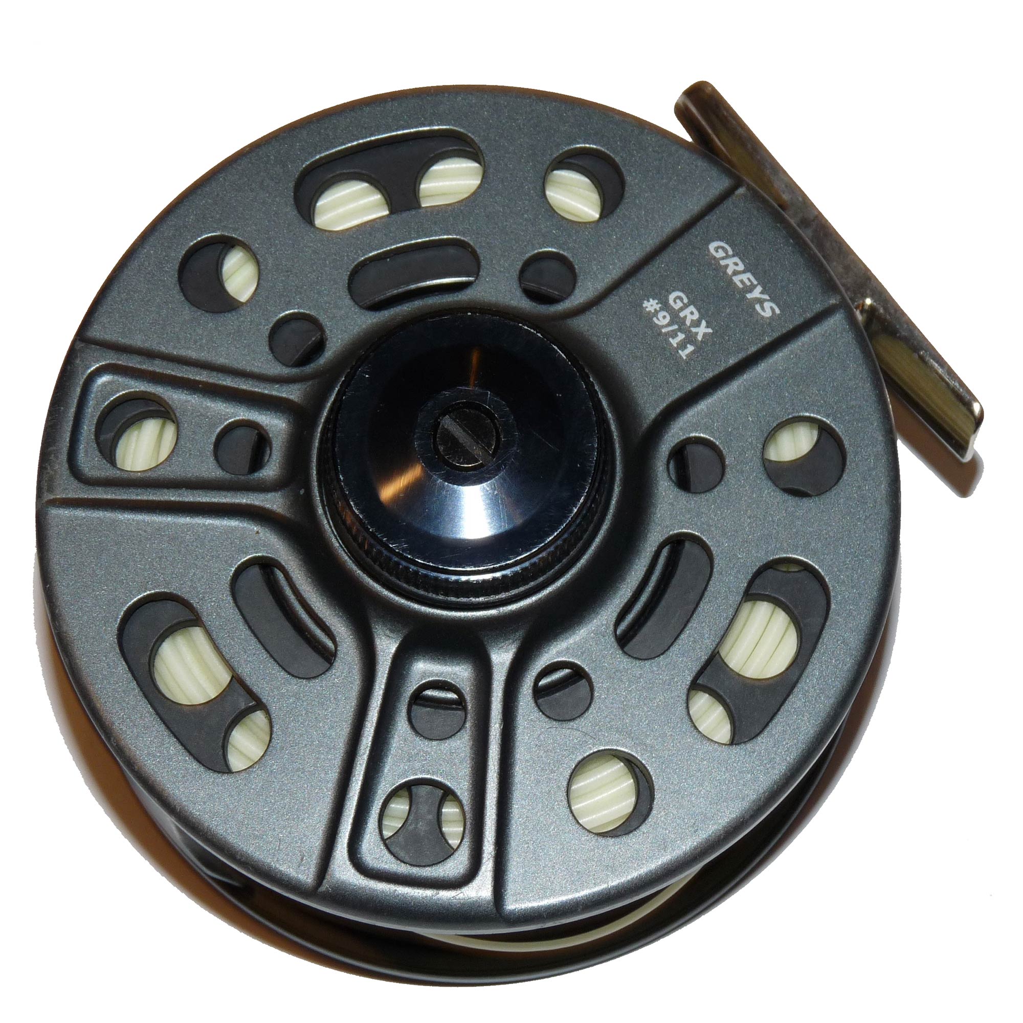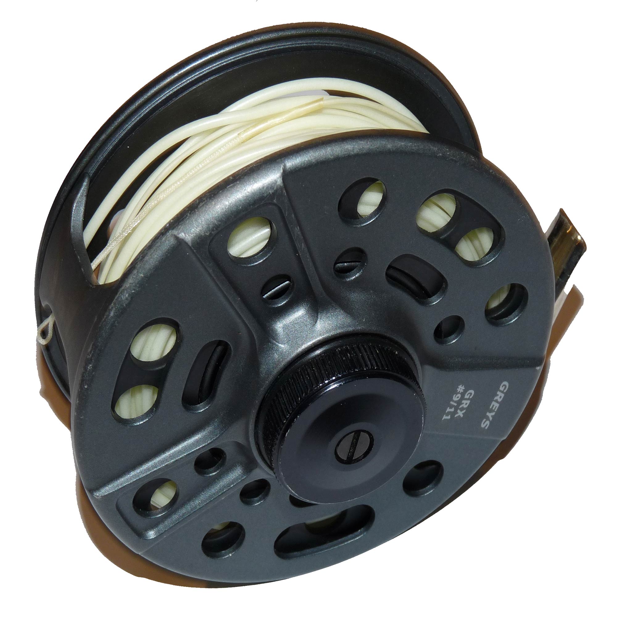 Greys GRX #9/11 salmon fly reel with 4 spools and case