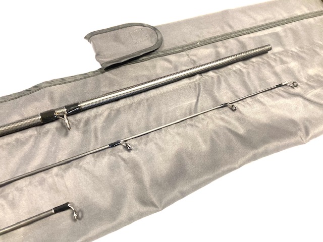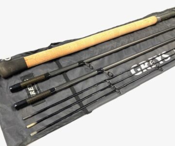TT opinion: This is a fine quality 12′ Prodigy Barbel carbon rod by Greys of Alnwick. it comes with 2 separate top sections. one 1.5lb Avon top white painted, and a feeder or quiver top with 3 additional push in tip. Only been fished a couple of times. Good all rounder Avon rod for barbel chub tench fishing in rivers and lakes. Comes in makers cloth bag.