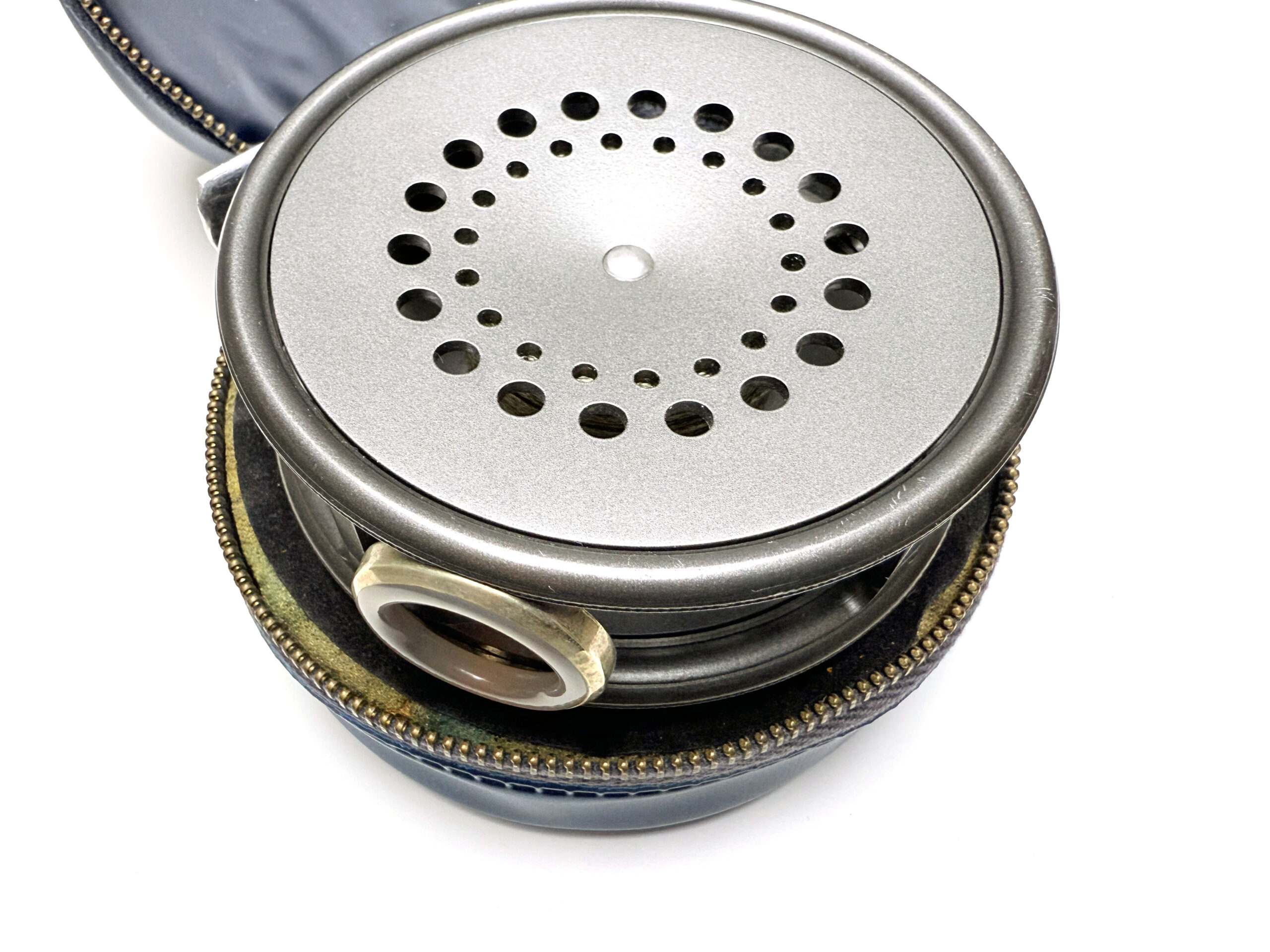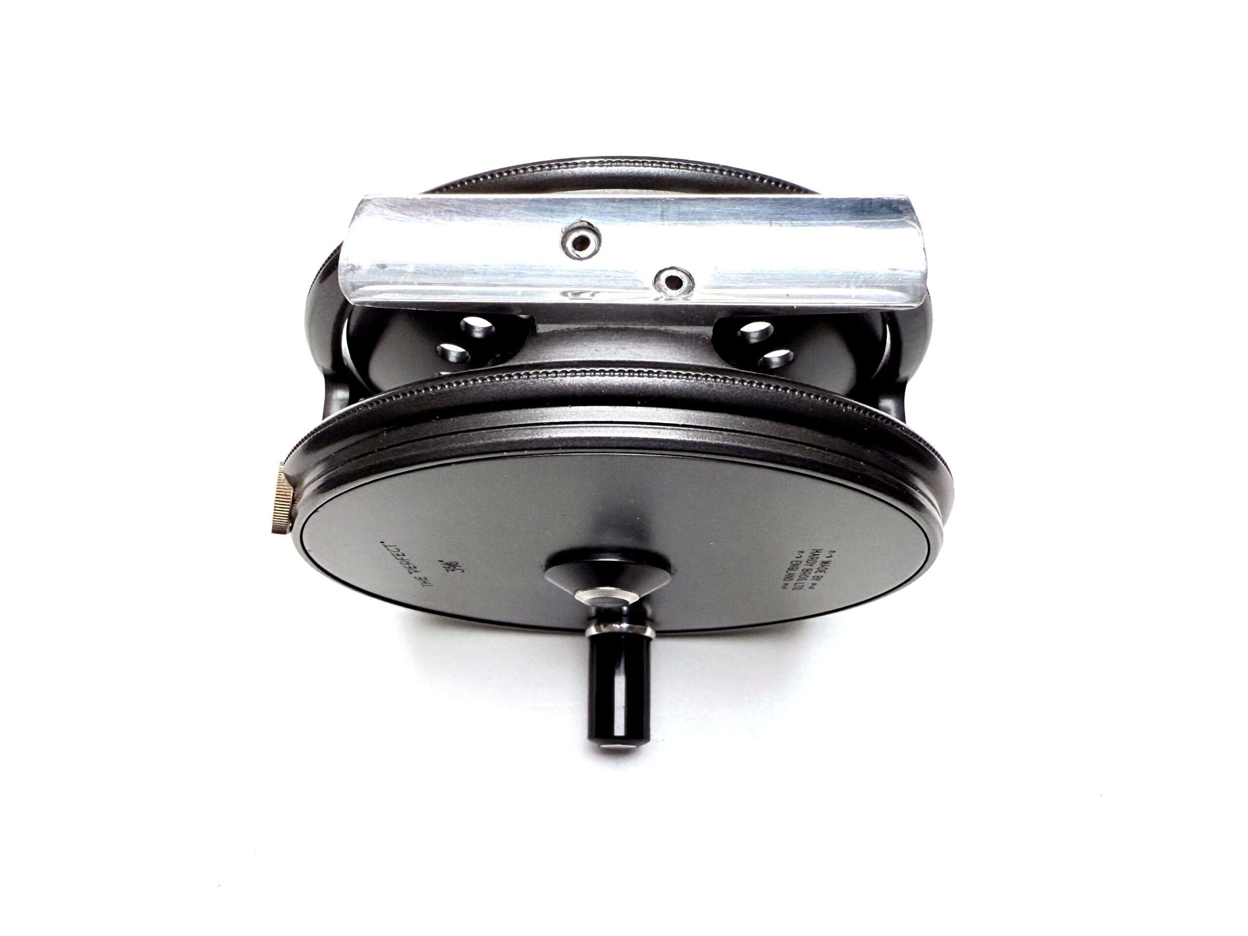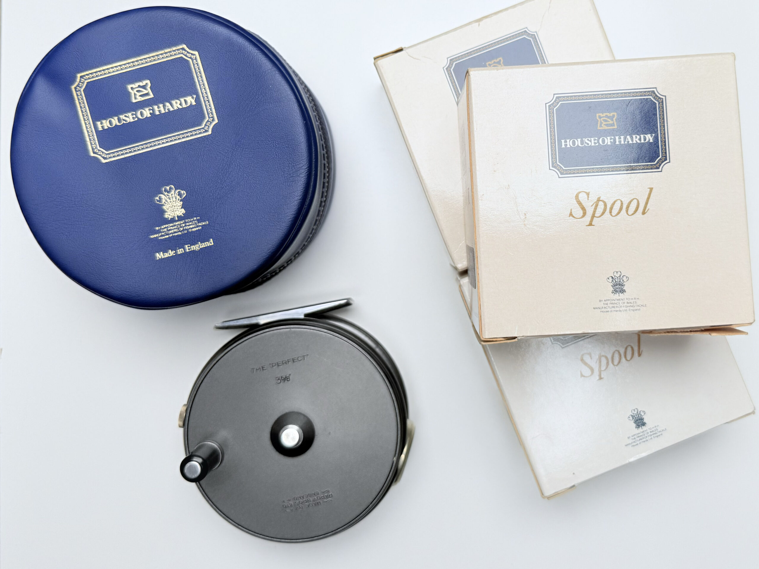 Another excellent later-production Hardy Perfect in the 3⅝” size, featuring a black handle, smooth alloy foot, rim-mounted tension regulator, and line guard. This example comes complete with three spare spools and its outer box. A superb outfit for the angler or Hardy enthusiast.
