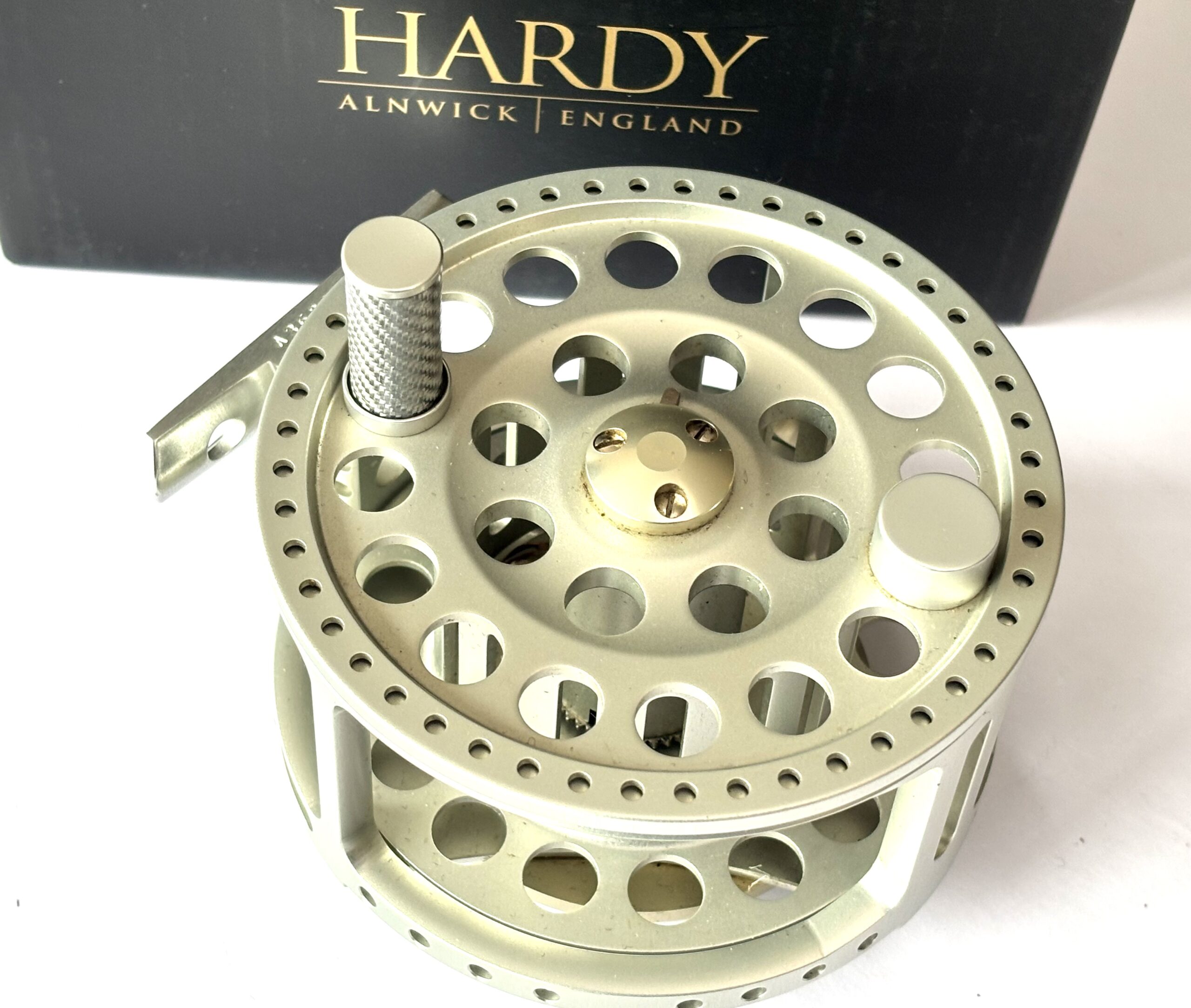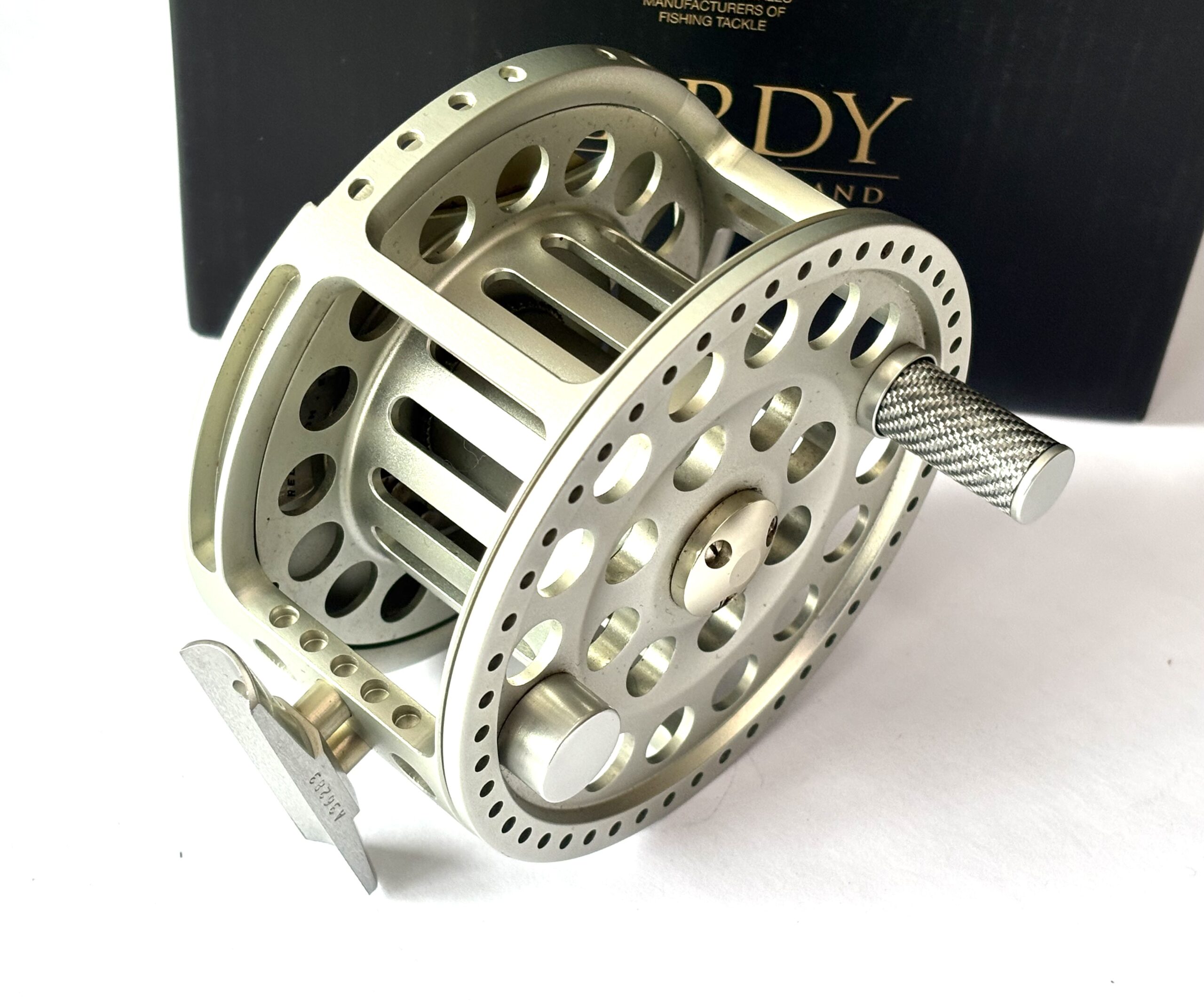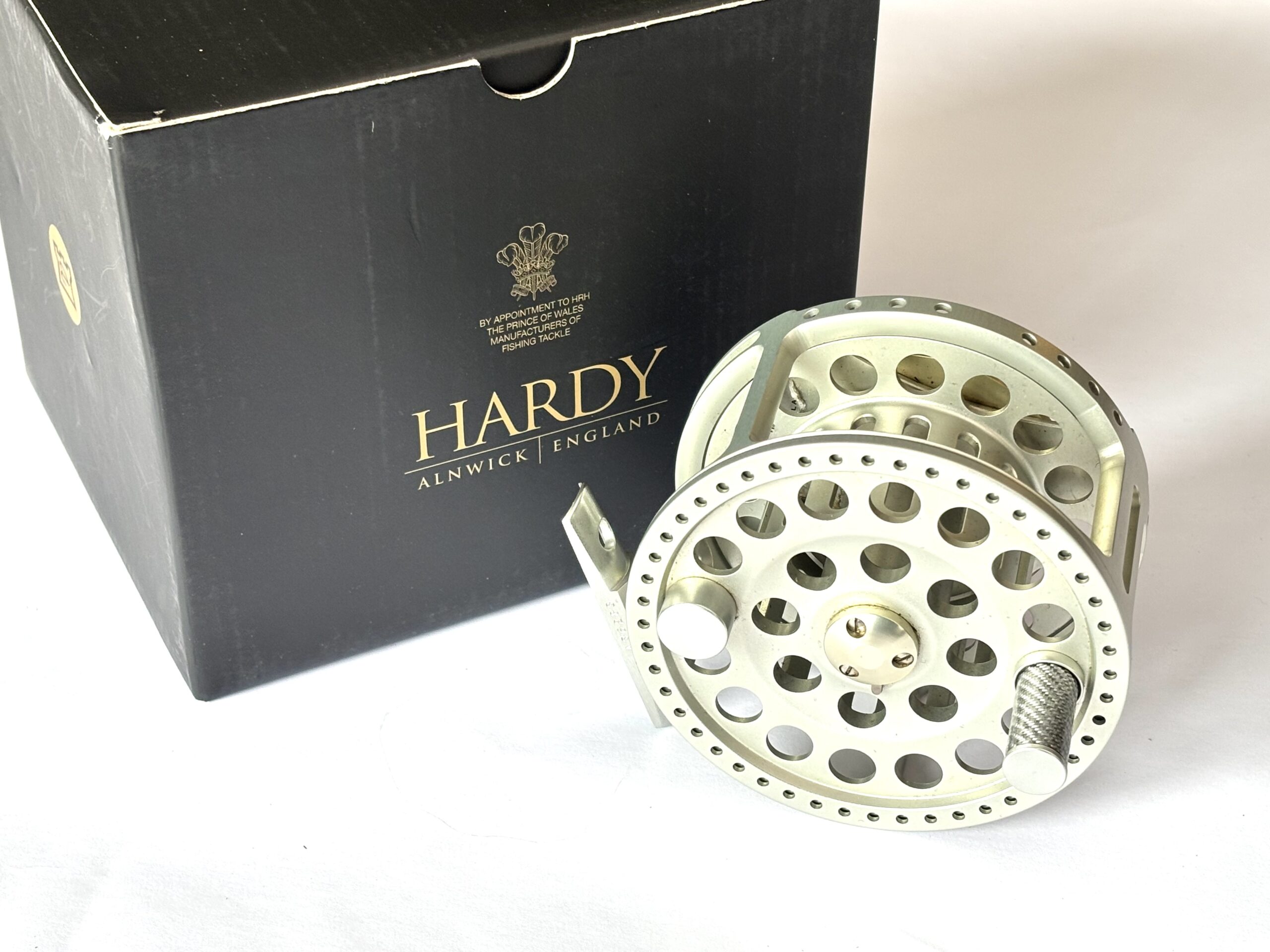 Just arrived — another superb Hardy reel in fine condition. Features a very low noise check, rear drag adjuster, and can be fished left or right-hand wind. Comes complete with outer cardboard box.