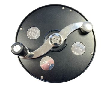 As part of a 60+ Hardy reel collection just in this Cascapedia is in excellent condition with S shaped handle, a very few extremely minor marks to rims. Black side plates and polished alloy rims. Foot stamped E08063. Arrow drag tension indicator to rear plate with model details. Complete with papers and loaded with floating line. Ready to fish!