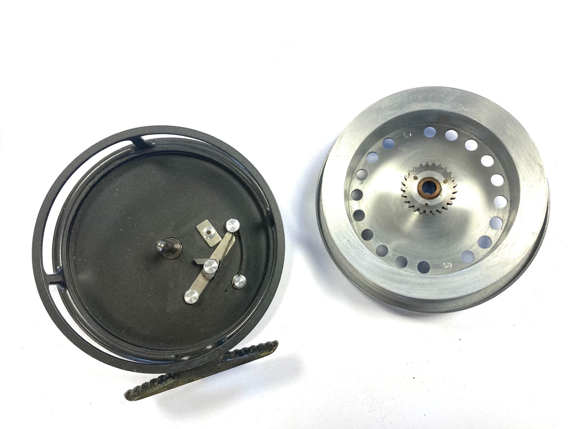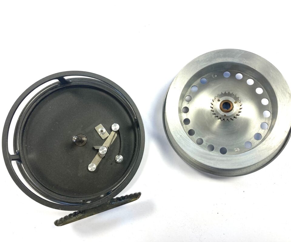 TT opinion: Just in this rarely seen 1950s model Hardy “The Eureka” 4” alloy trotting reel in very good collector condition. Ventilated drum with lightweight latch & factory correct handles side lever ratchet check correct 60mm smooth brass foot the reel is factory original. Great little reel for chub, grayling, silvers and general river fishing.