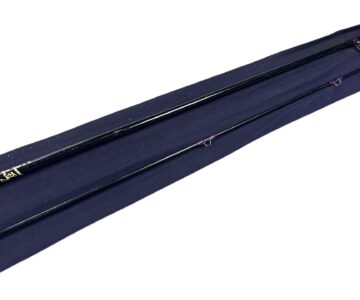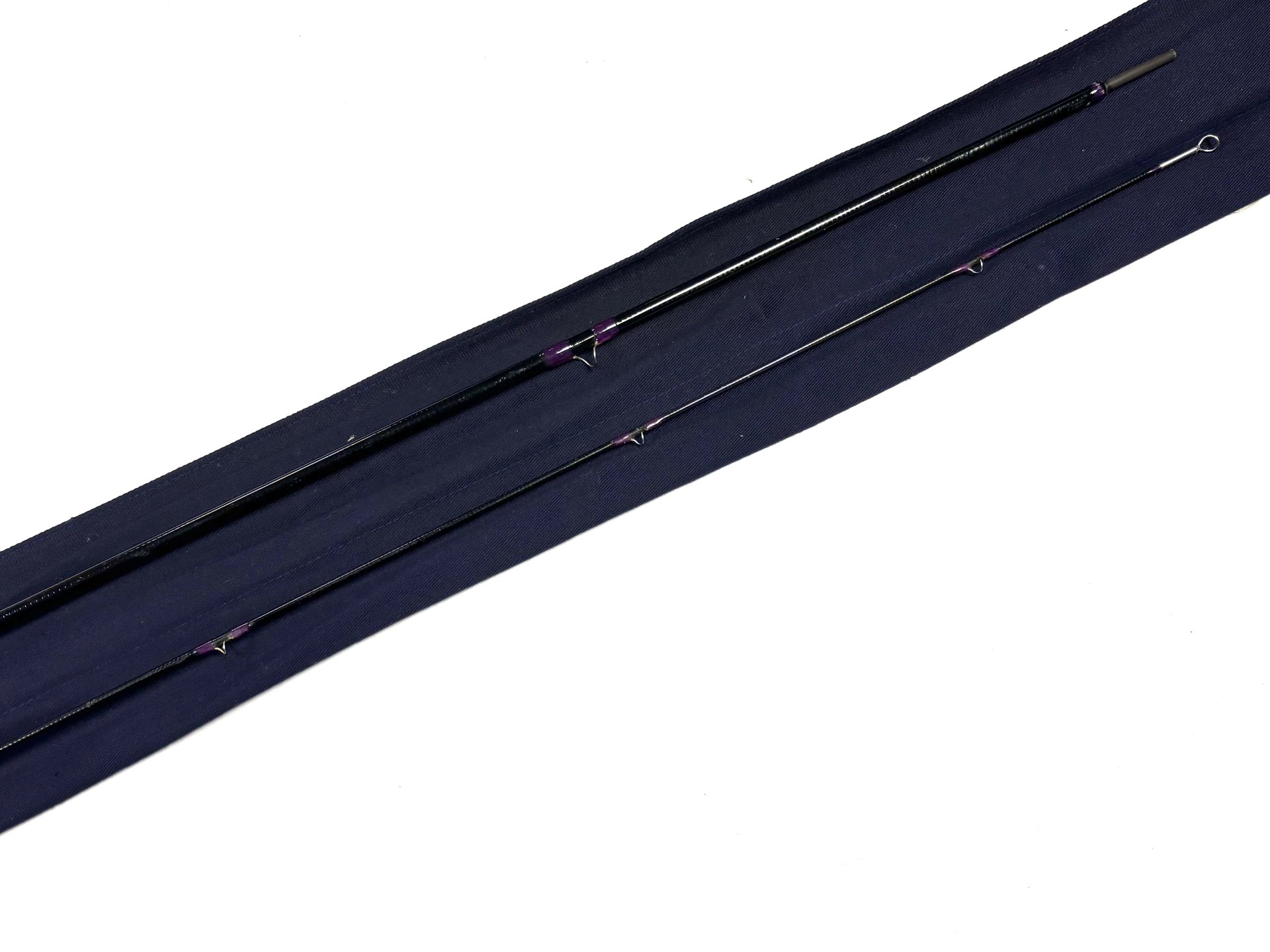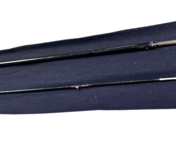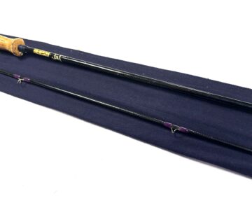 TT opinion: A very good 2 piece Hardy Favourite trout fly rod. A popular example with fuji butt ring and snake eyes throughout, purple whips and cork handle with blue Hardy rod. The ring keeper has been rewhipped. Ready to fish.