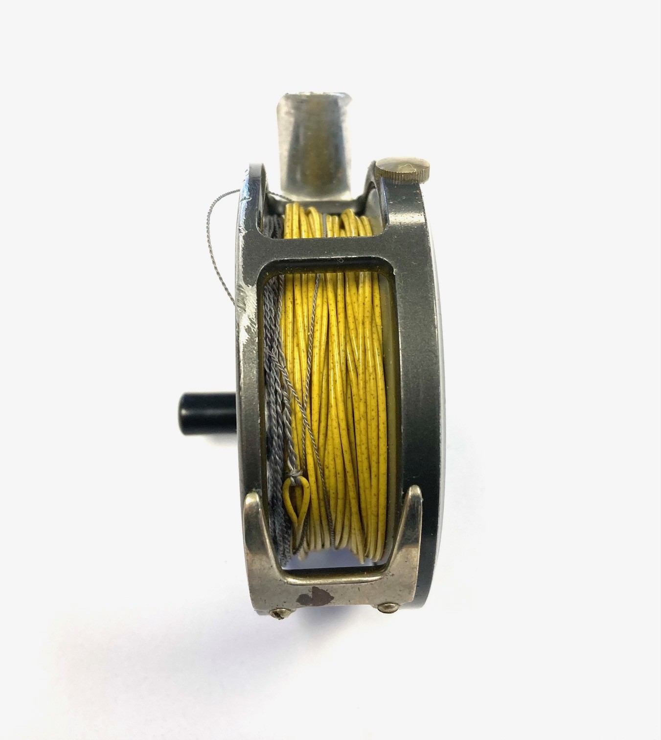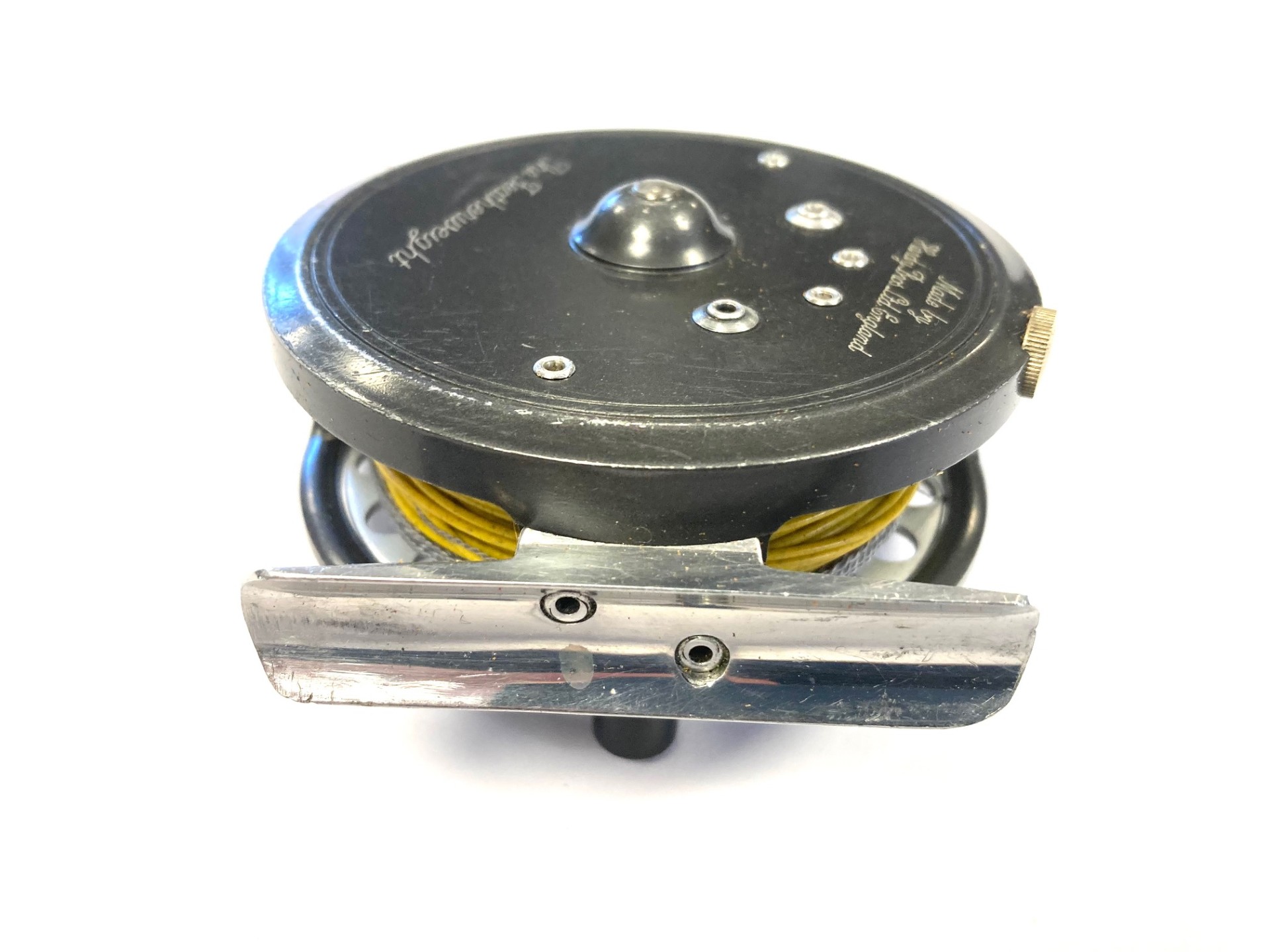 TT opinion: An excellent value for money Hardy alloy trout fly reel. Hand built-in Alnwick. 2 7/8″ diameter light alloy fly reel that can be fished left or right-hand wind. Brake adjuster to the rim and correct 60mm smooth alloy foot blade fitting cane, glass and carbon fly rods. The reel runs smooth and well, retains most original finish with minor paint loss/ marks on the frame. A great value reel for smaller rods using say lines #3/4/5 plus spare spool loaded with floating line.