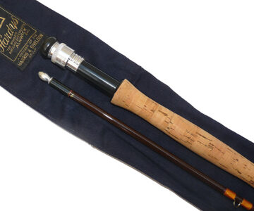 TT opinion: This is one of the nicest Hardy Fibalite 9′ rods I’ve had in years. If the rod has been used more than two to three times, I will be surprised. A classic in its time, the rod still feels current. It’s lightweight, pulls through well and you know with glass it will fish the same all of its life. 100% original, suited to lines #7. it’s ready to fish and comes in makers original blue cloth bag. River lake pond or pool, it will handle them all. Suitable reels include Hardy Marquis, Princess, LRH and Gem.