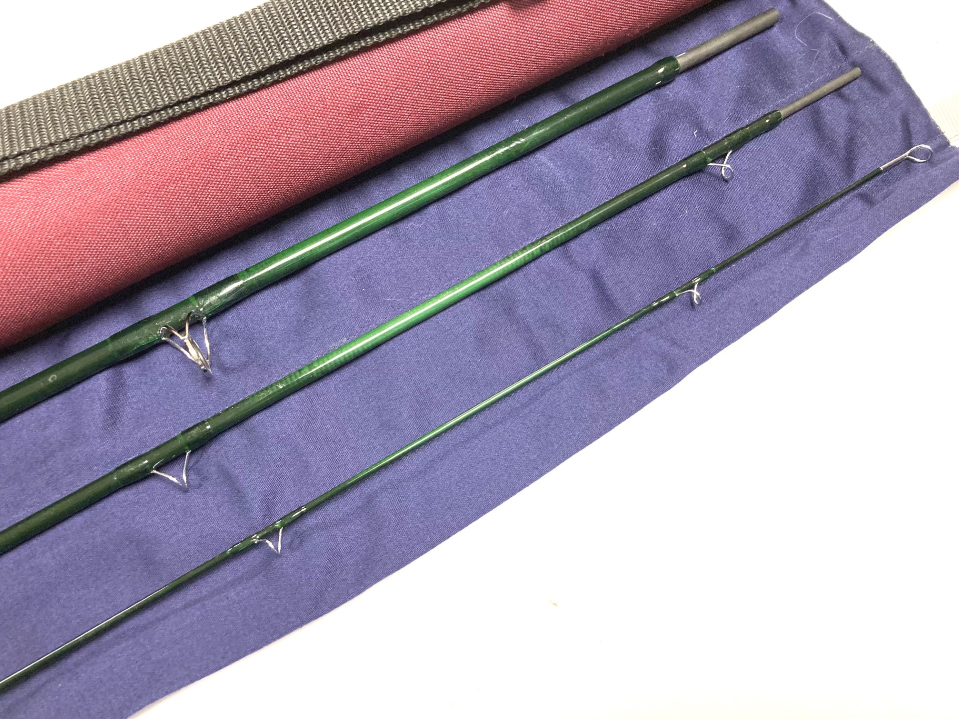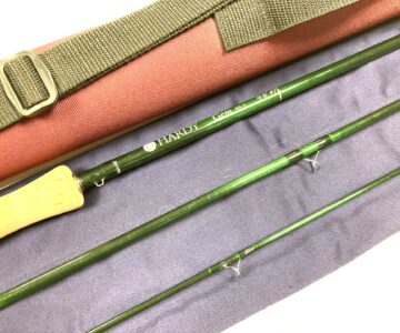TT opinion: A classic high quality carbon fly rod suited to both trout, sea trout and single-hand light salmon fly fishing. Dk green finish. Lined butt and stripper guides with snake intermediates. Spigot ferrules and polished stoppers. 7.5″ cork handle with extension and annodised screw reel fitting. Superb quality rod. Light and powerful to handle. Comes in the maker’s original fitted cloth bag and Hardy Cordura zip top tube with carry sling.