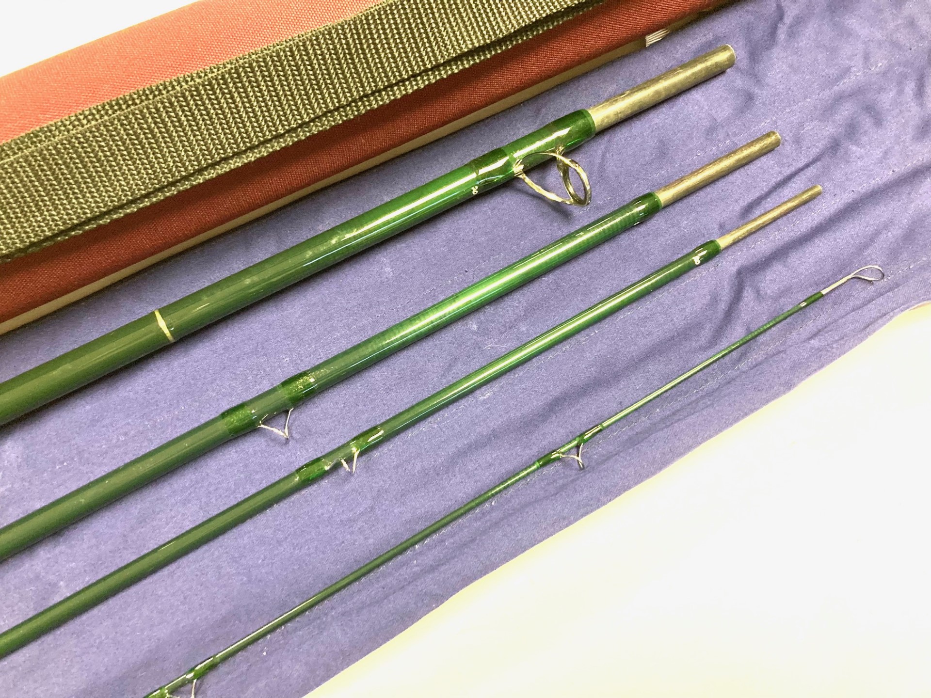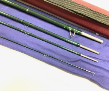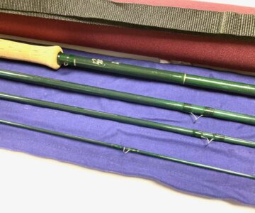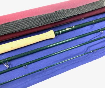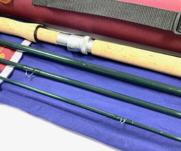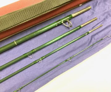 TT opinion: A fine classic Hardy Gem salmon fly rod by Hardy’s of Alnwick. Green finish with alloy guides. Spigot ferrules with polished alloy stoppers. 24″ cork handle with screw alloy reel fitting. A superb looking rod with tip action #9. Good all round river and still water salmon rod. Comes with makers original cloth bag and outer Hardy case.