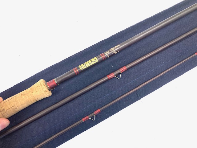 A good Hardy Graphite Deluxe 11’ 3 piece for line #7/8 in very good condition with a smooth cork handle, a Fuji guide ring with snake rings throughout, red silk whippings and an original Hardy rod bag. Lovely action rod and ready to fish, ideal for reservoir trout.
