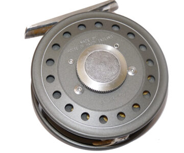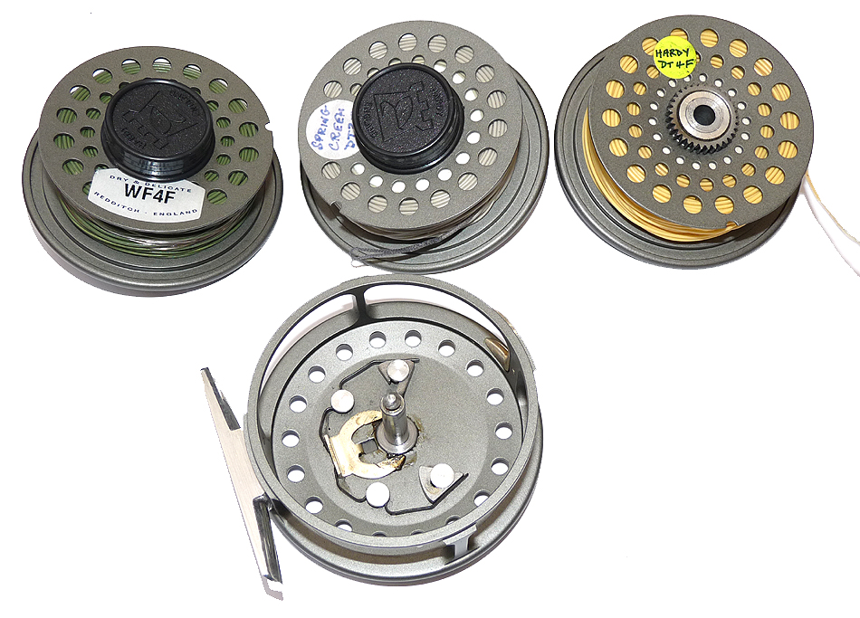 TT opinion: A Hardy JLH #5 alloy trout fly reel in fine condition. 3″ diameter, rear drag adjustor, reversible line guide & smooth check clicker. The reel can be fished right or left-hand wind, comes with 2 spare spools, 3 lines : WF4F Dry & Delicate, Spring Creek DT3F, Hardy DT4F, plus 2 Hardy pokey drawstring bags. Super outfit ready to fish.