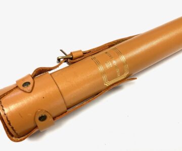 One of two spare Hardy leather rod tubes we have for sale complete with working buckle and strap. 147cm in length with an internal diameter of 48mm.