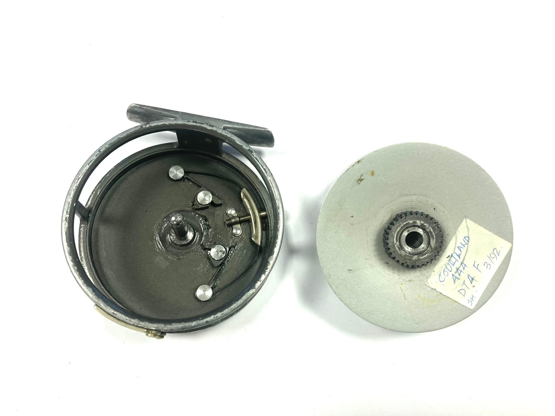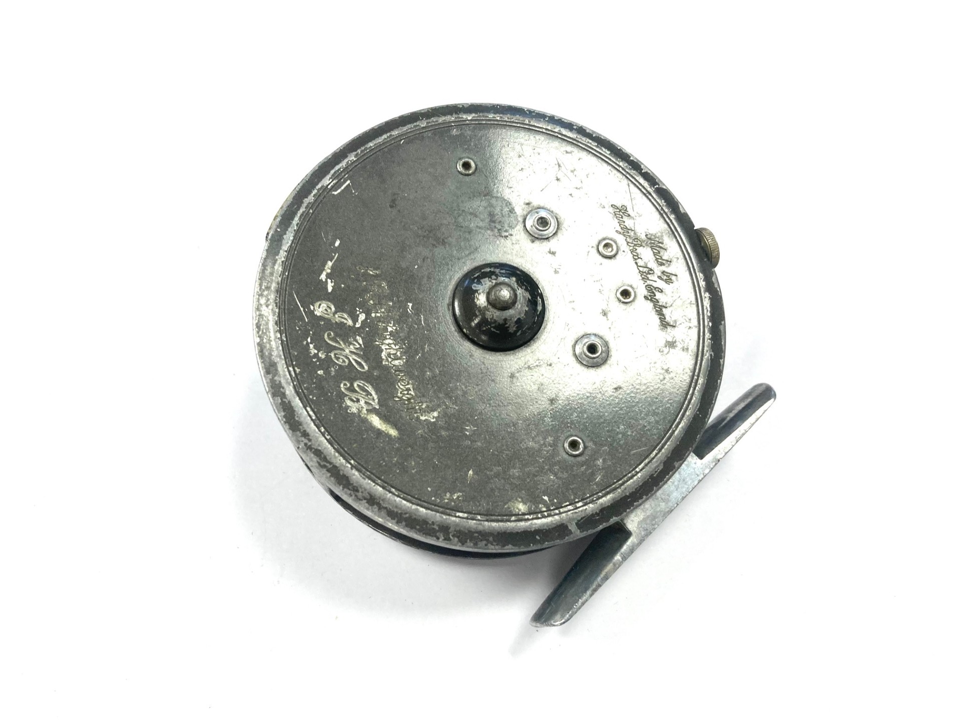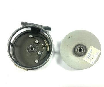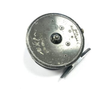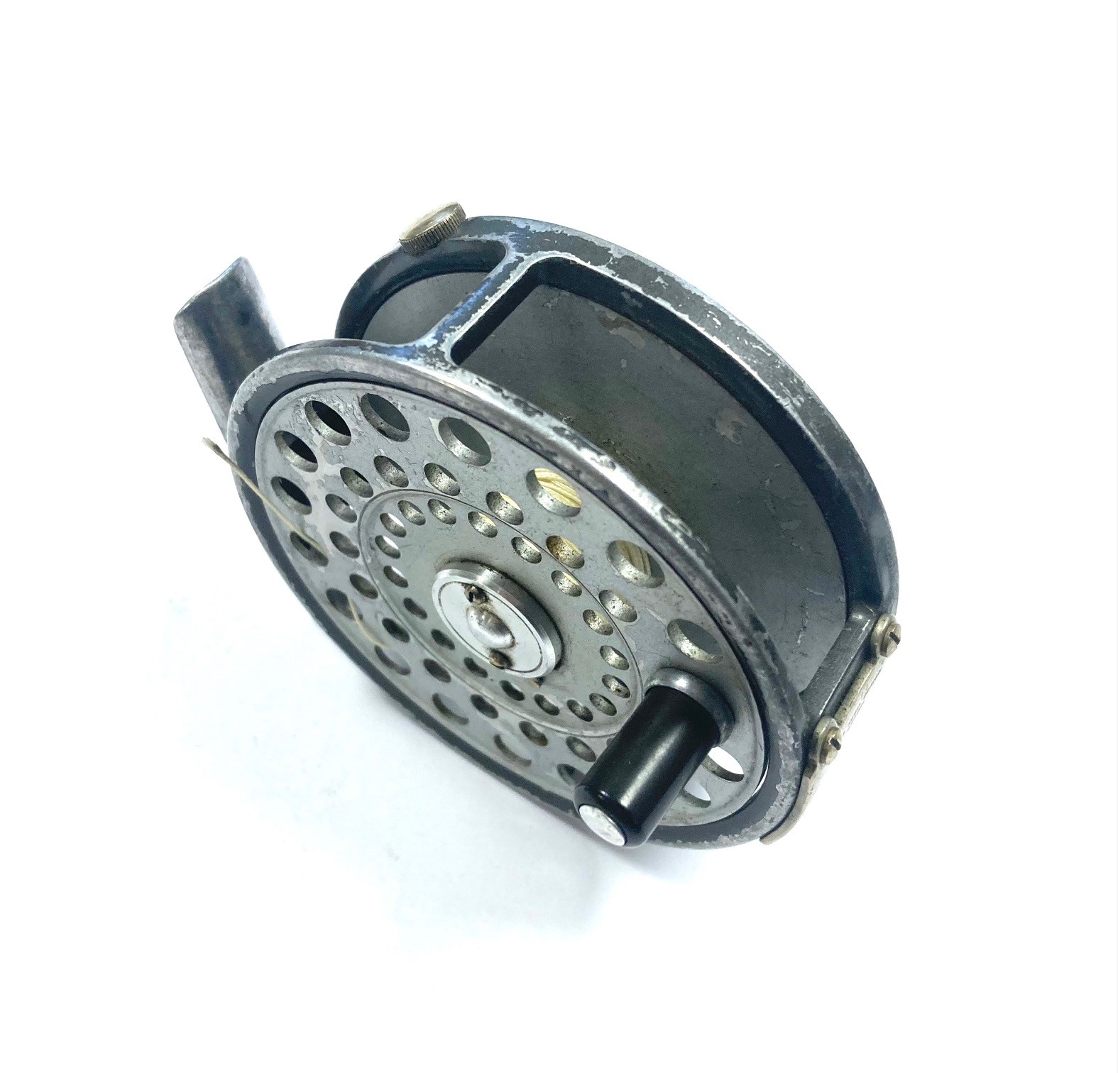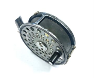 TT opinion: A good usable but worn Hardy LRH lightweight, with perforated front face, black handle and straight alloy foot, not filed. U shaped line guard and little side rim tensioner. Turns fine with constant check. Ready to fish complete with Hardy blue zip reel case.