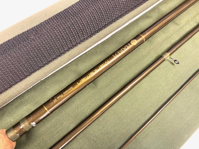 TT opinion: Just arrived from a private collection with 5 other Hardy Marksman rods and tackle this Hardy Marksman Specimen Float 13ft also in excellent condition. Green graphite carbon with a full length clean cork handle with a screw fit reel fitting and alloy stoppers. Another classic 13ft three piece rod with labelled and protective carrying tube and green cloth rod bag. A superb design by the worlds specialist tackle company, ready to fish!