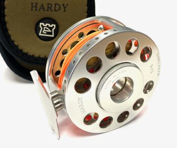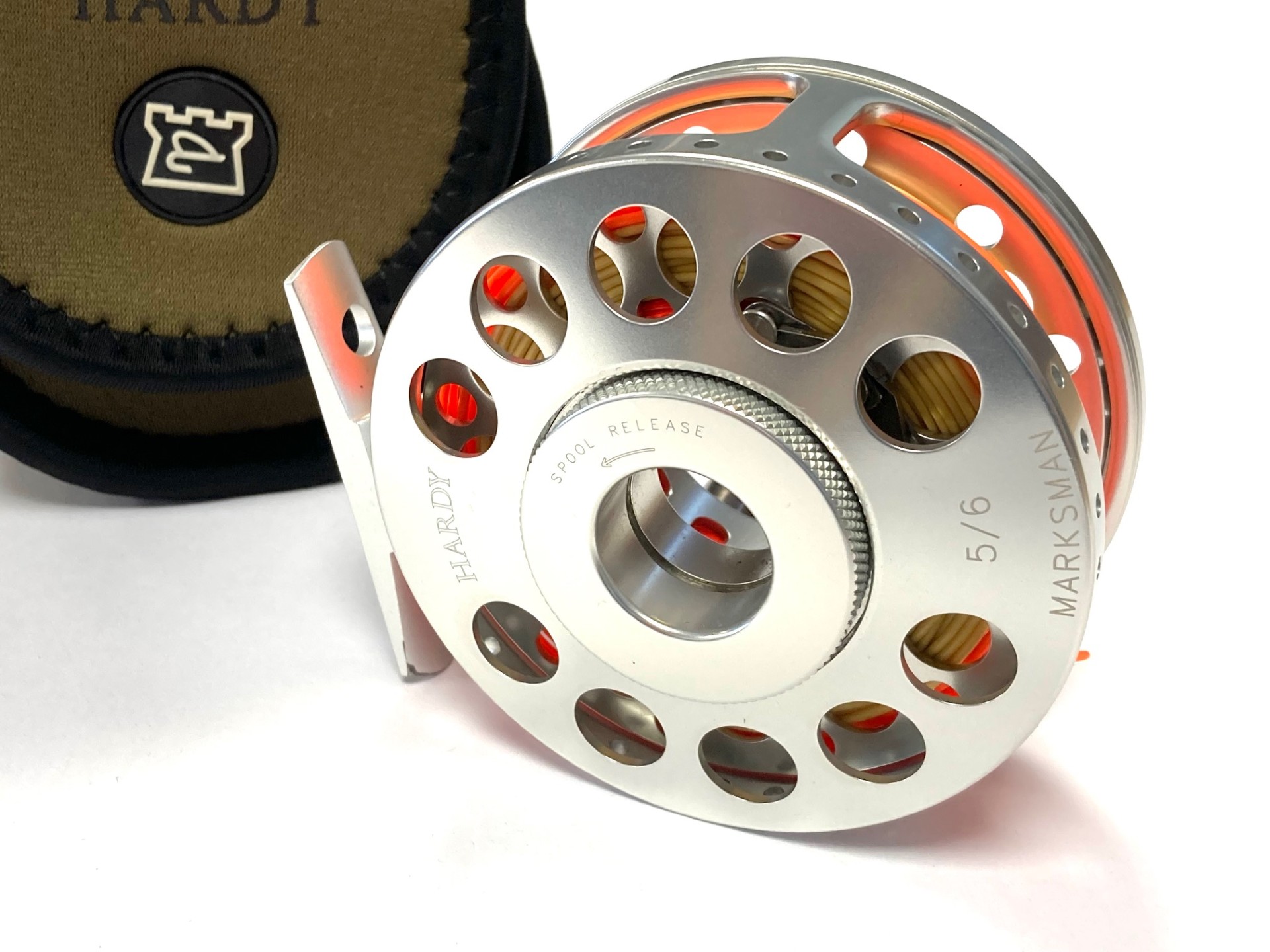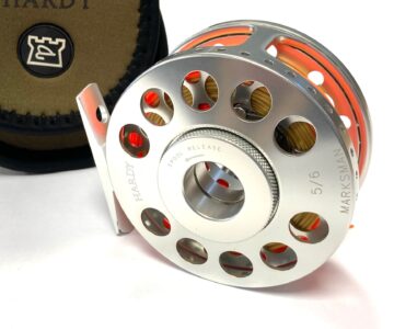 A fine Hardy Marksman alloy trout fly reel with spare spool and Hardy pouch. The reel has hardly been used and ready to hit the bank!