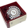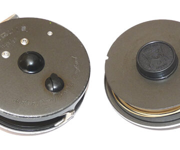 A classic Hardy fly reel in fine original condition. Black handle, 2 screw drum latch reversible U shaped line guide and internal metal check with backplate adjuster. The reel can be fished right or left-hand wind, retains good original finish, fully working reel, no faults. Comes with a spare spool and floating line plus two Hardy zip padded cases.