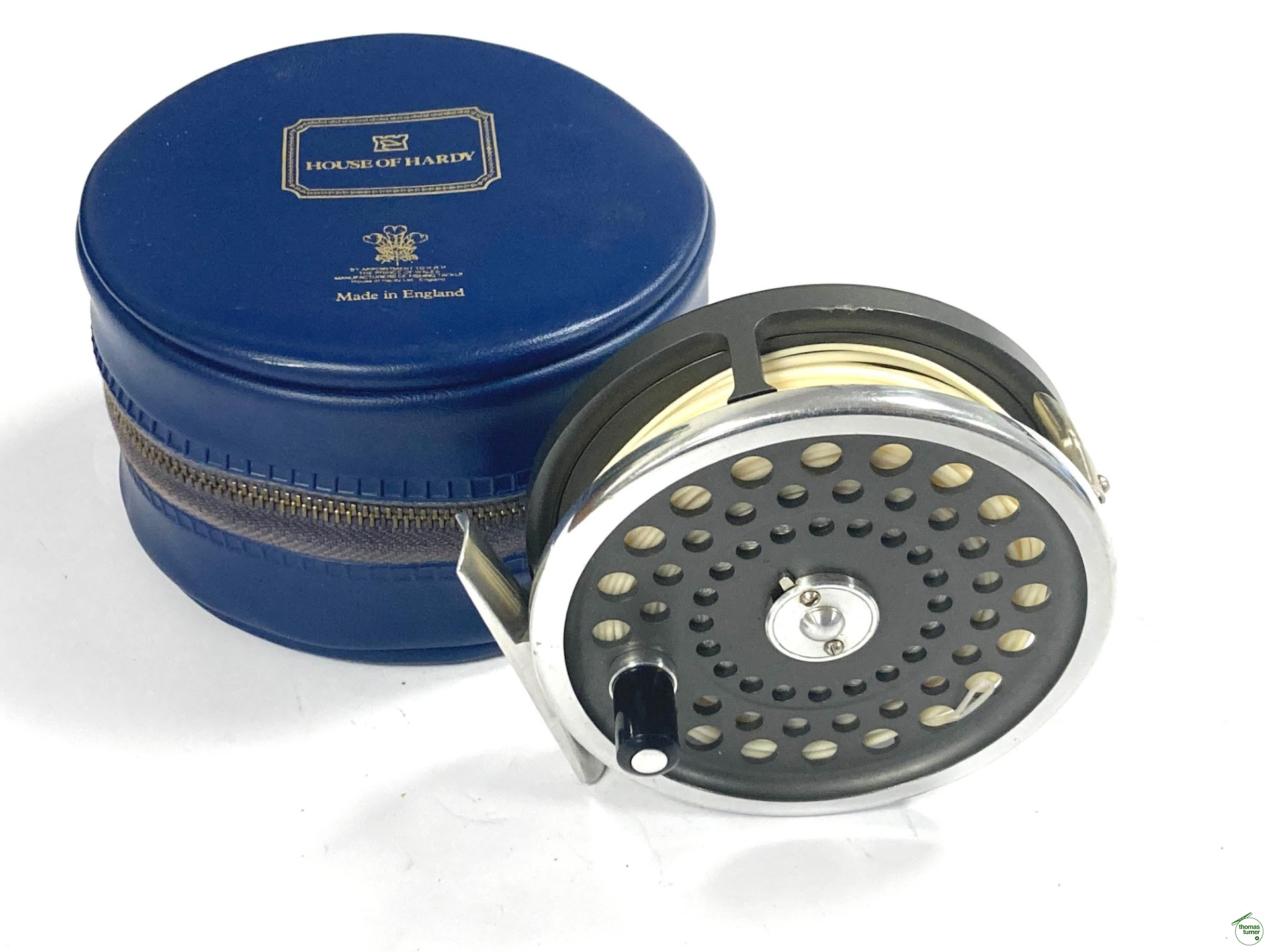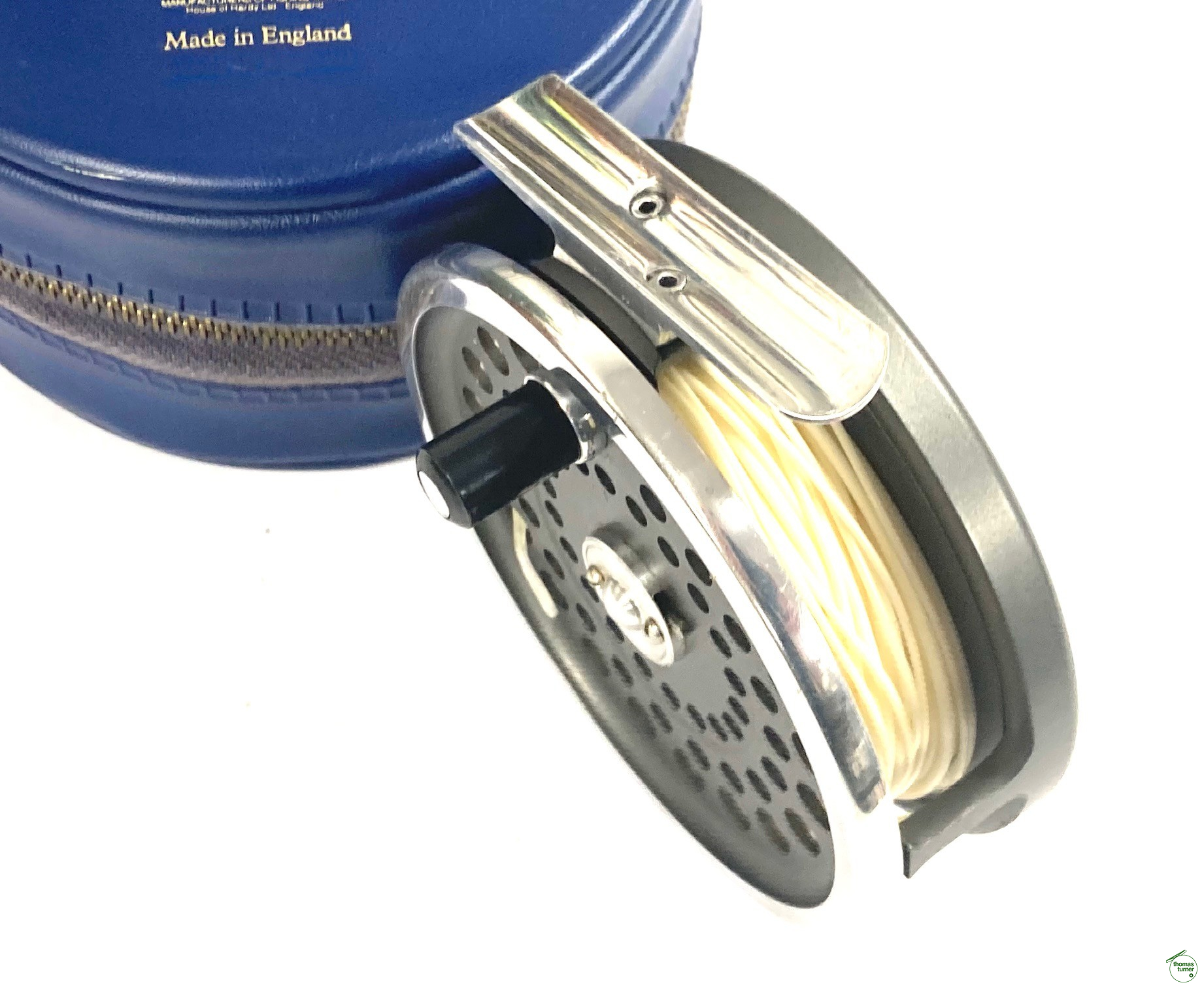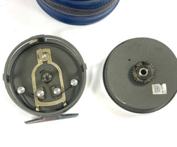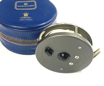 TT opinion: A very good Hardy Marquis trout fly fishing reel with perforated face plate, black handle, smooth alloy foot and U shaped line guard so can be fished right or left hand wind. Complete with case.