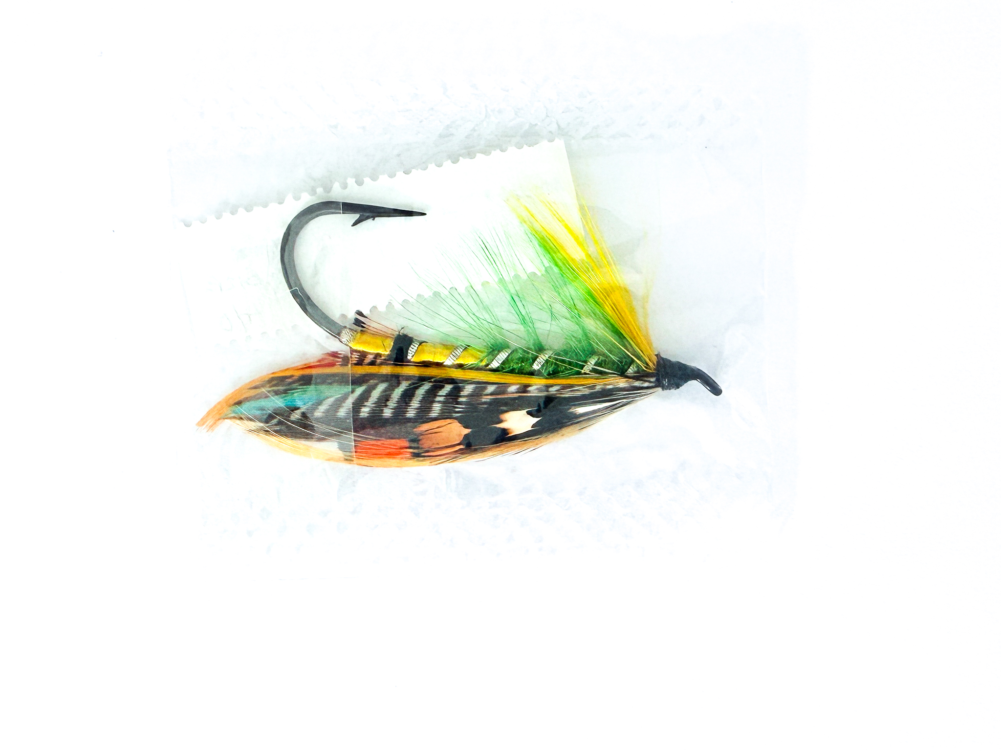 A rare and highly collectible fully dressed salmon fly from Hardy of Alnwick, dating to the 1960s—an era widely regarded as the golden age of traditional fly dressing.