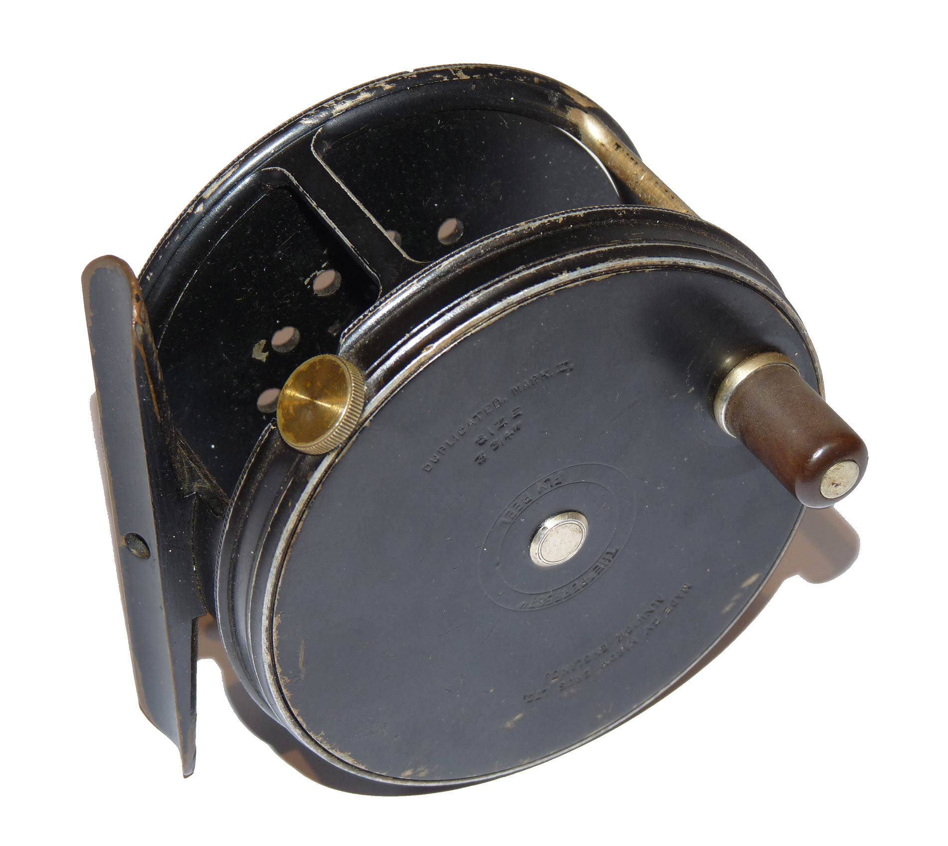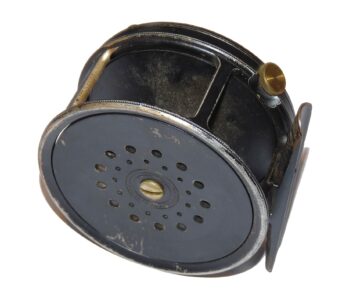 TT opinion: A super Hardy Perfect salmon wide drum, 3.75″ MK II model with black handle, straight ribbed brass foot, rim tensioner and MK II details to face plate. Very good strong check, no drum rock, loose spots and as you can see from the photos in fantastic original condition. Ready to fish or one for the collection.