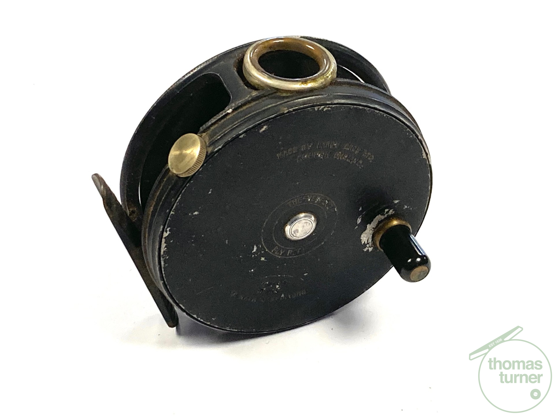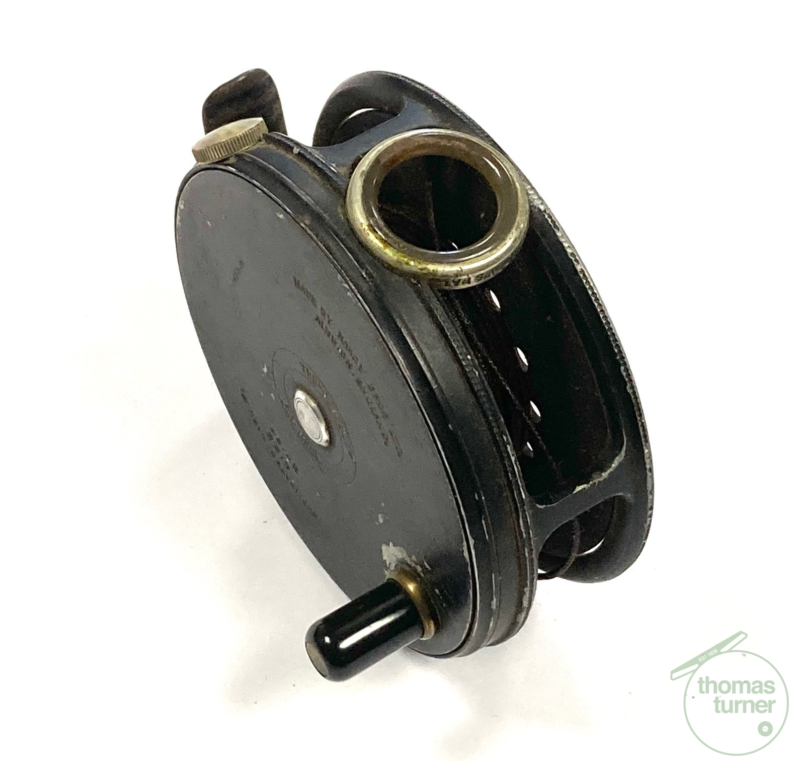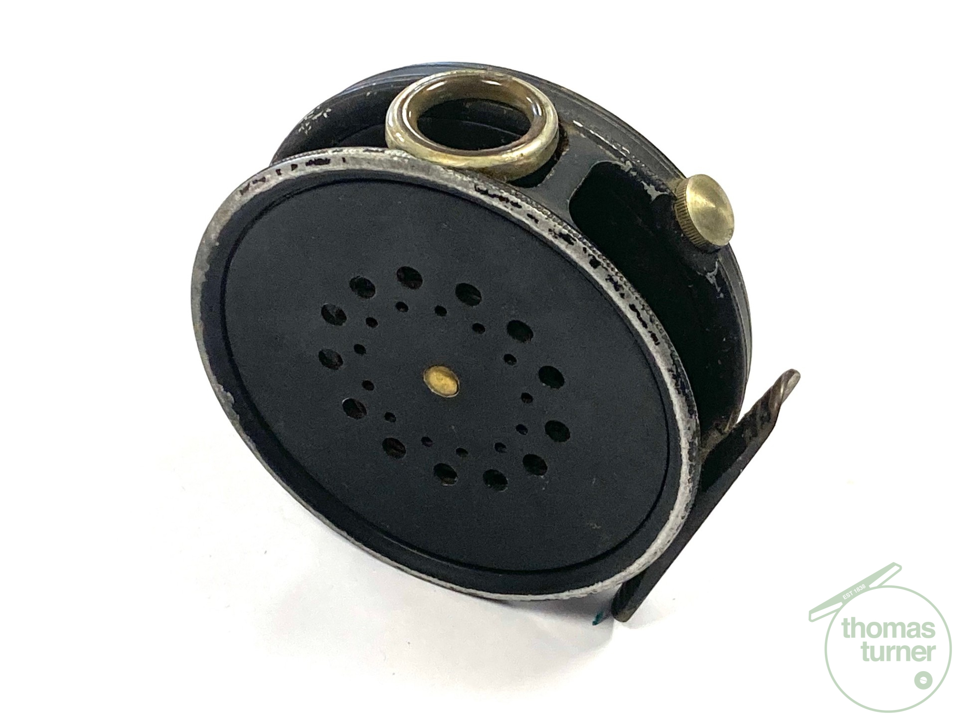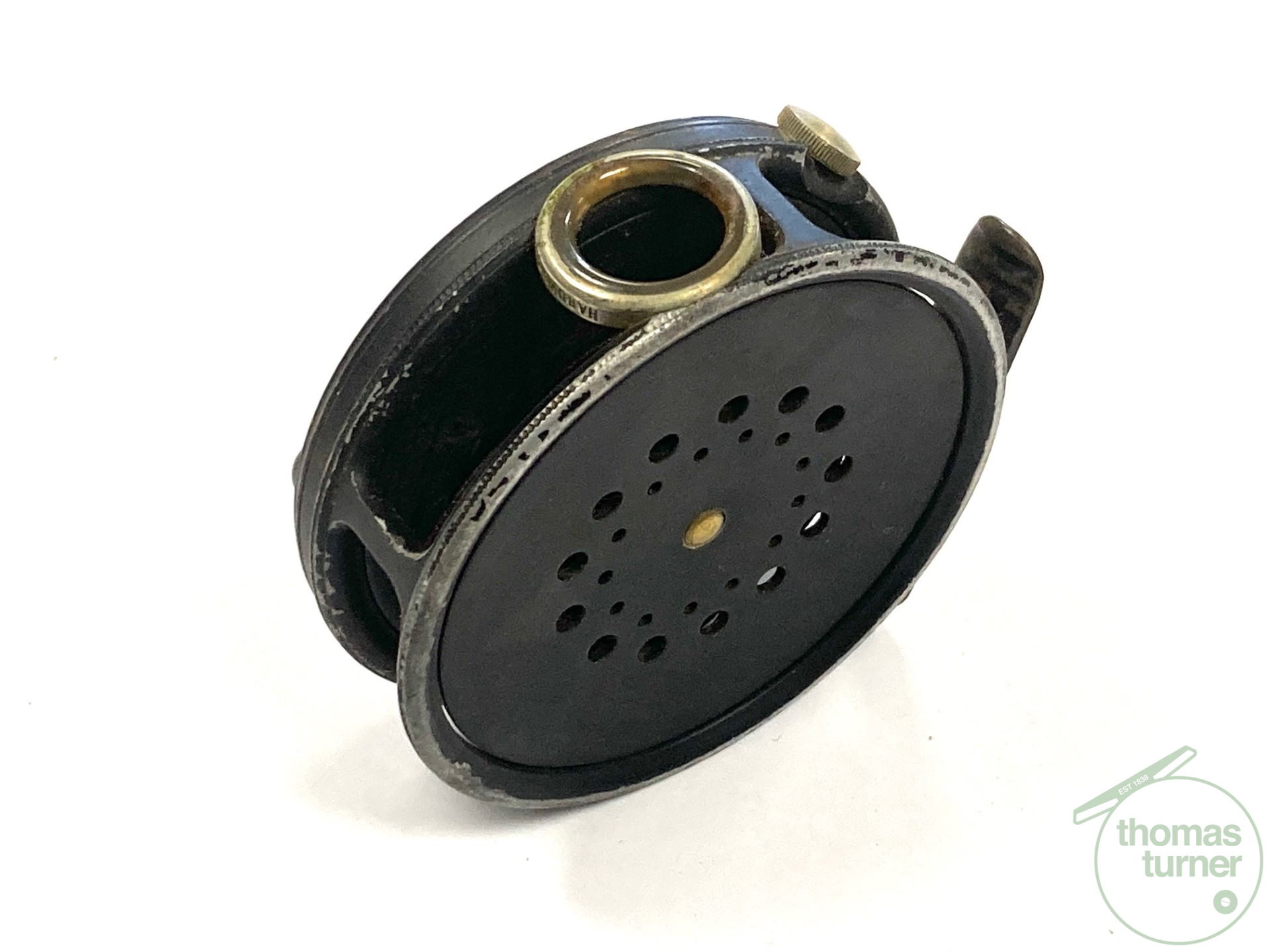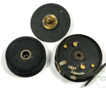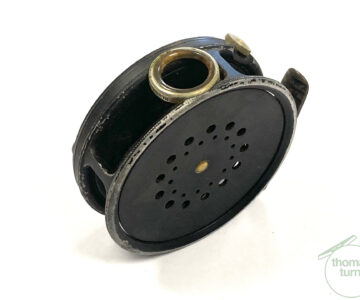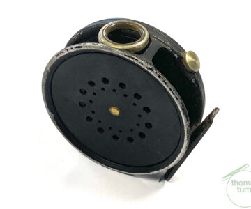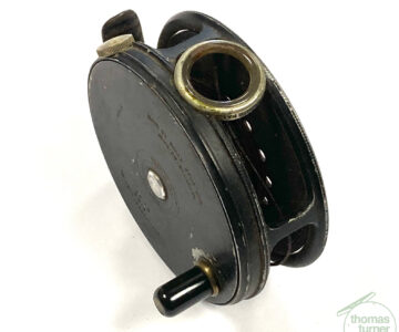 TT opinion: Another very good example of a fishable Hardy Perfect in size 3 3/8″ with black handle, rim tensioner, 62mm straight alloy foot and line guard – no cracks. No drum rock or play. Right hand wind. Finished in WWII black paint. Cracking reel to use or one to collect.