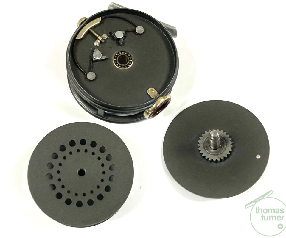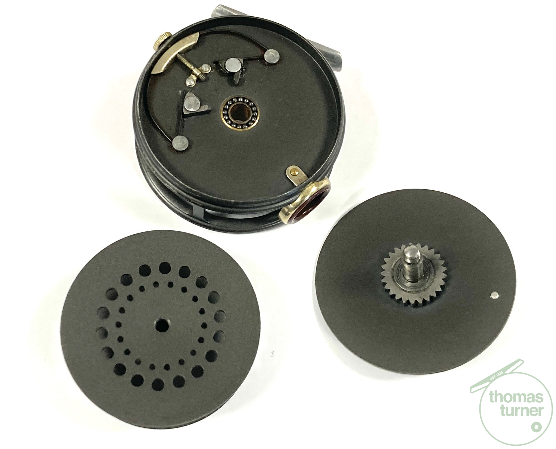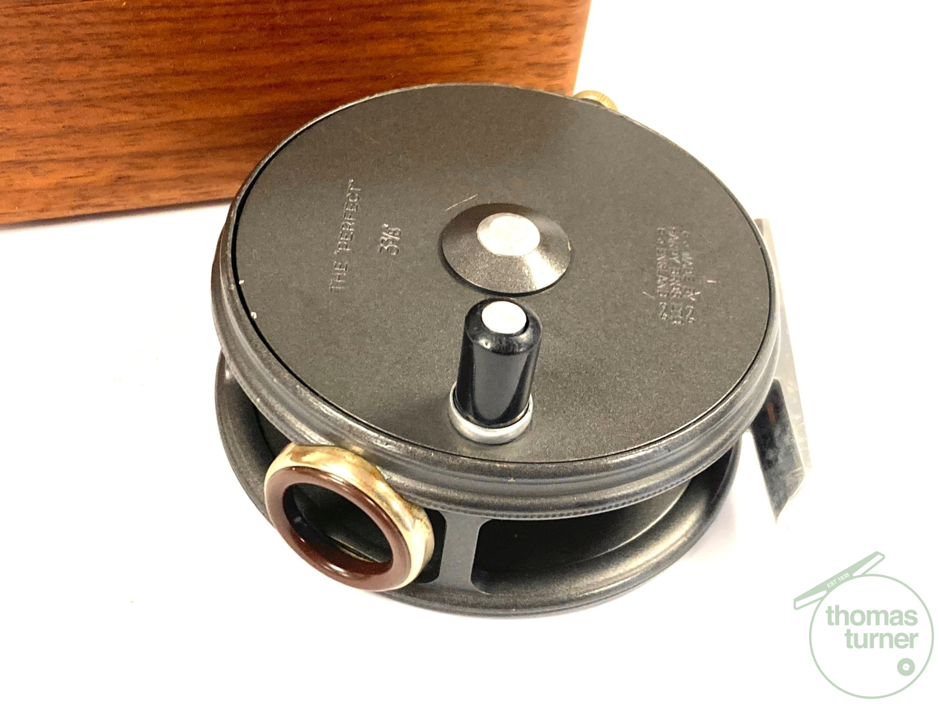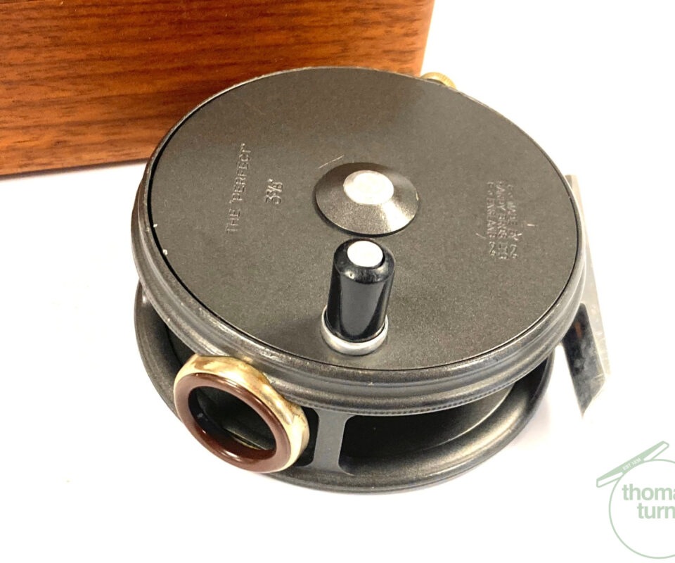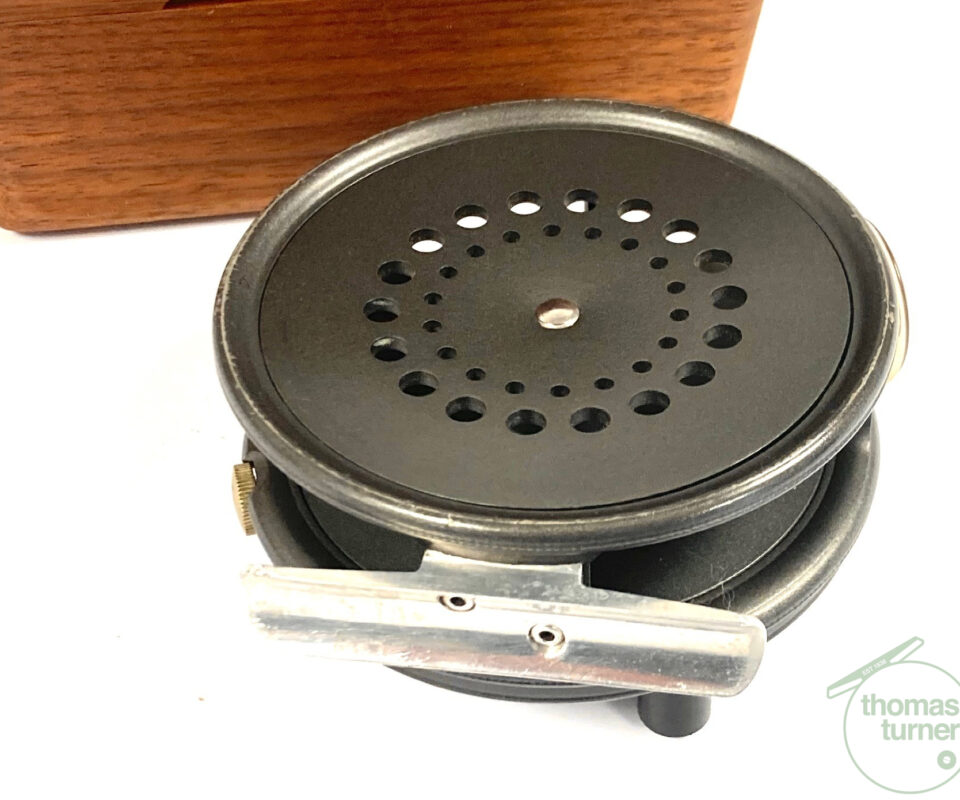 TT opinion: Just in from a nice Hardy collection this very good Hardy Perfect 3 3/8″ narrow drum alloy fly reel with good smoke dark red line guide. Right hand wind. Hand-built in Alnwick by craftsman reel makers. The black handle turns freely. Working rim tension adjuster. Light wear to rims. Twin internal springs and checks. The reel runs silky smooth, no play, no damage or alterations. Comes in rare Hardy walnut reel case. Check our other listing for more Hardy reels from this collection!!!