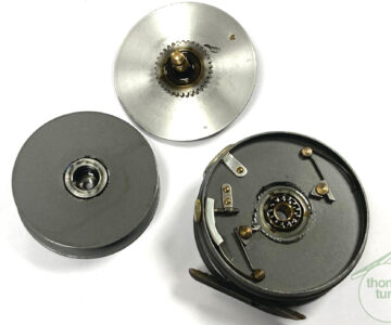 A very good Hardy Perfect reel in the 3 3/8″ trout size with ebonite handle, alloy smooth and rim tensioner. Winds fine with no tight spots or drum rock. Some minor light wear to rim. A fine reel with lots of its original finish. Complete with blue Hardy reel case. Ready to fish!