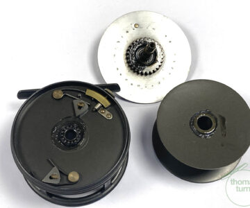 TT opinion: A superb Hardy Salmon Perfect reel just in. Part of a super collection just in. A fine vintage classic Hardy Perfect 4 1/4″ diameter wide drum salmon fly reel, with rim tension adjuster, original left-hand drum screw, the reel is right hand wind with twin internal springs and steel pawls. Smooth check clicker. I think the reel has been refinished sometime in its life. Superb quality reel, hand made in the Hardy Alnwick factory by craftsmen, built to last forever.