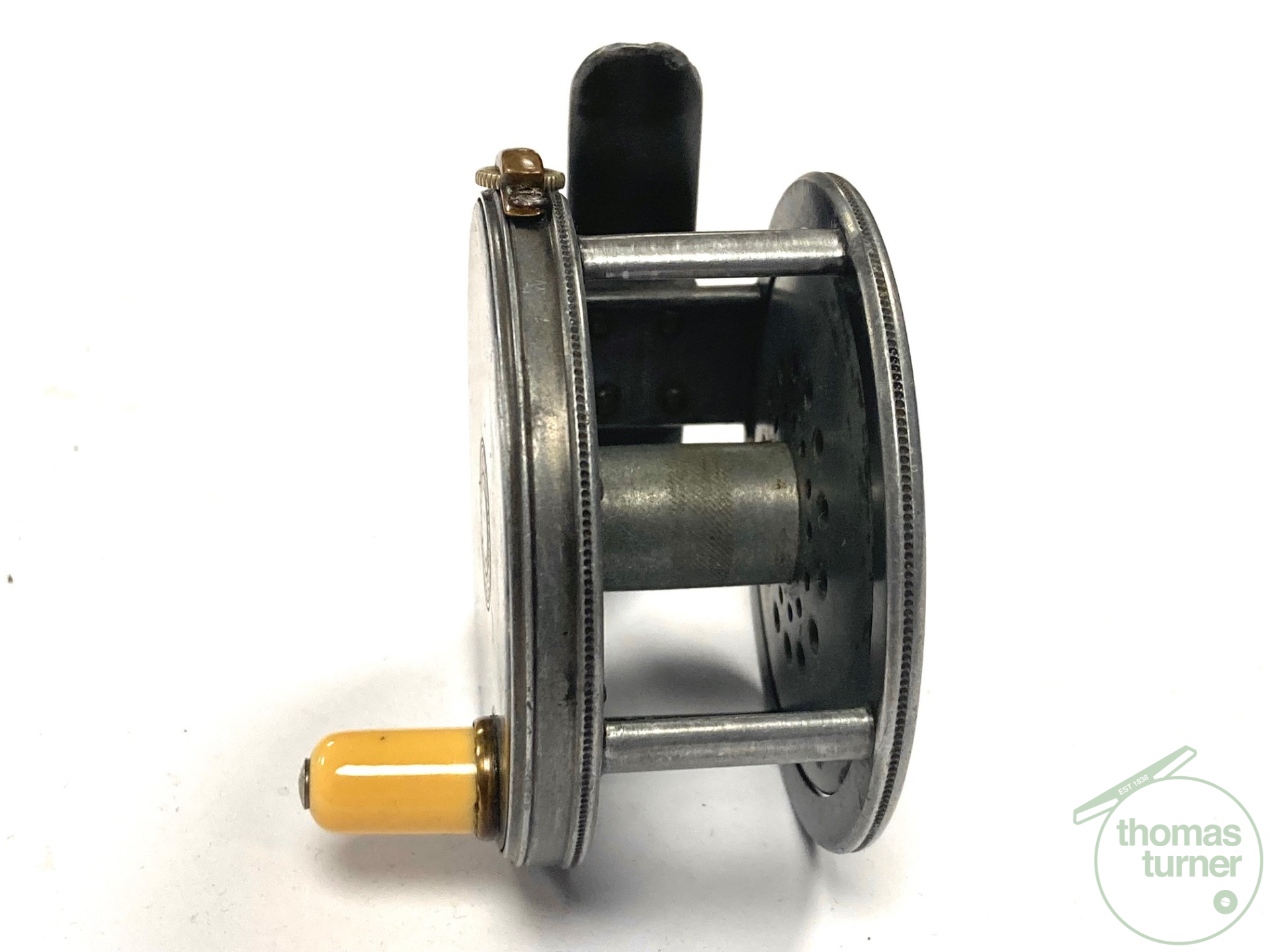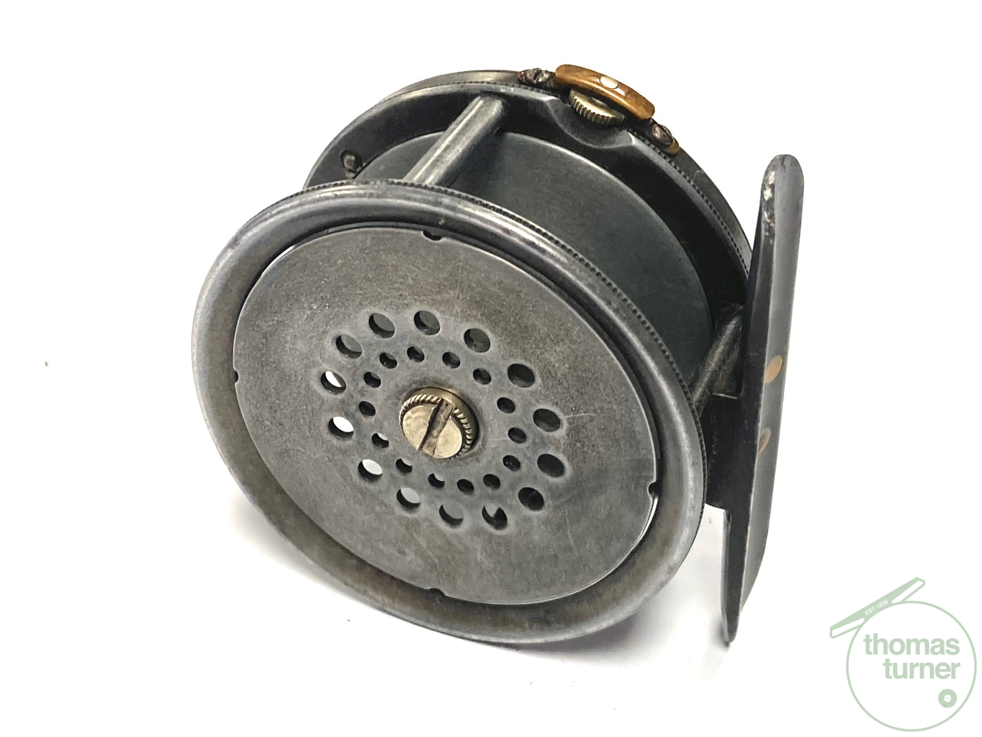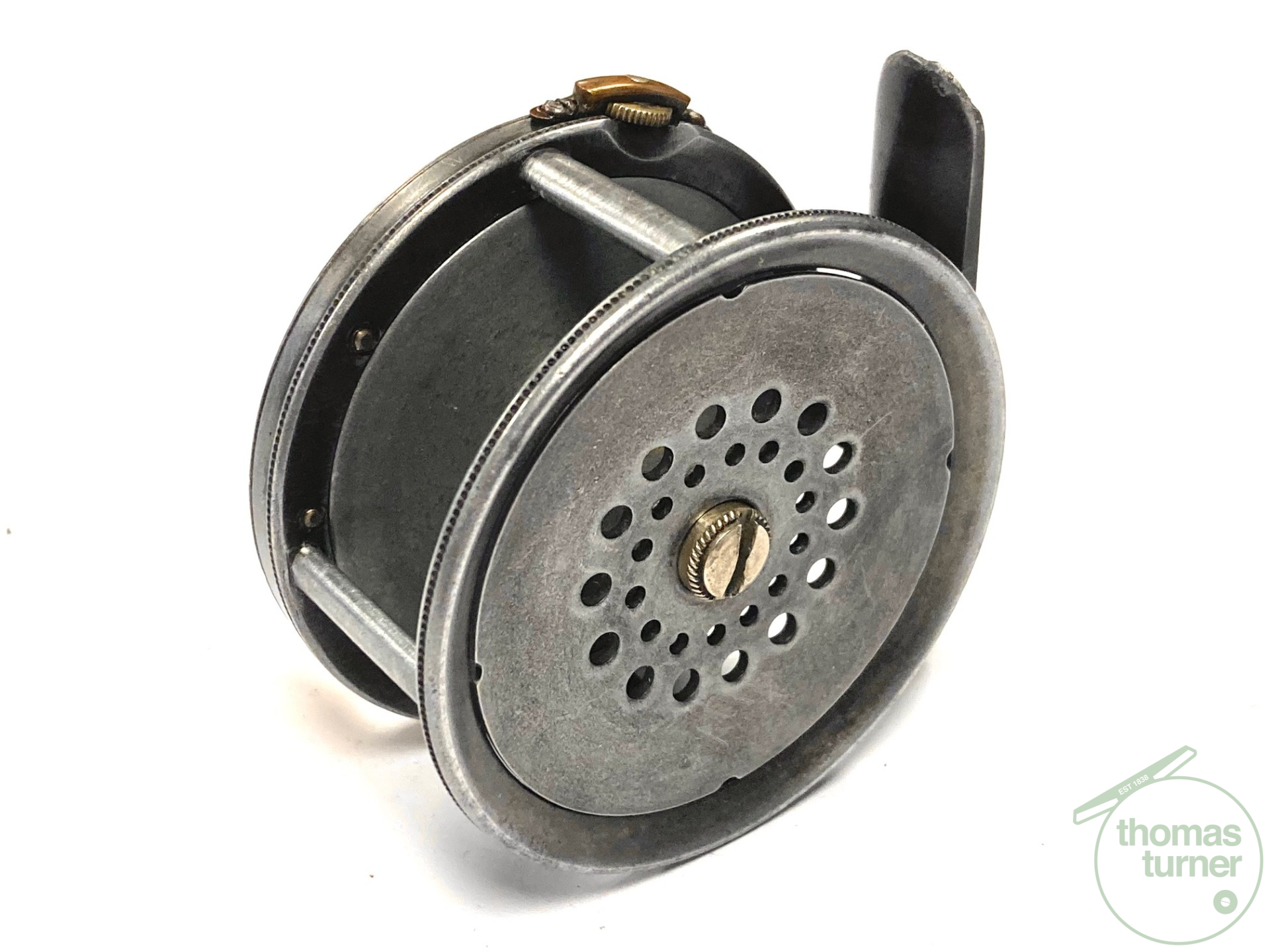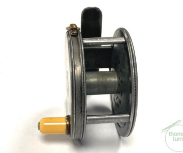 TT opinion: As part of a 120+ Hardy reel collection just in, this super rare Hardy Perfect 2 1/2″ alloy vintage trout fly reel, with four cusps to spool, 1905 internal check mechanism, brass bridged rim tensioner and original white handle. A very rare little reel that seldom comes to market in this, the smallest alloy size made. Reel turns without any lumps, bumps or tight spots. All original. One for the serious Hardy reel collector.