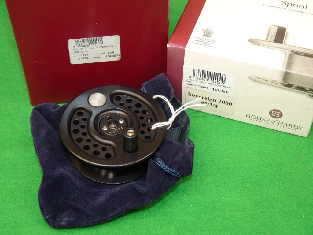 A Hardy Sovereign 2000 black #2/3/4 spare spool with box, brand new old shop stock, no better way to buy these quality spools, rare spool to find these days, check our other listings for more