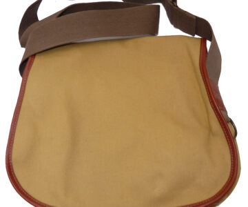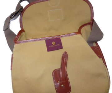 TT opinion: Hardy “The Brook” bag traditional canvas/leather measuring 12” x 11”, with leather strap, brass studs, side landing net ring, one internal partition & 2” adjustable webbing shoulder strap, in as new condition. Ideal for fishing, walking and travel.